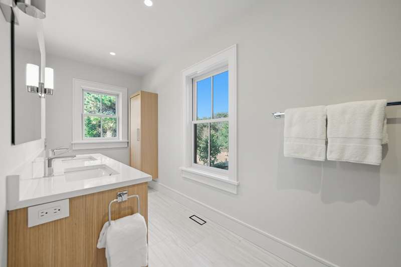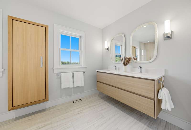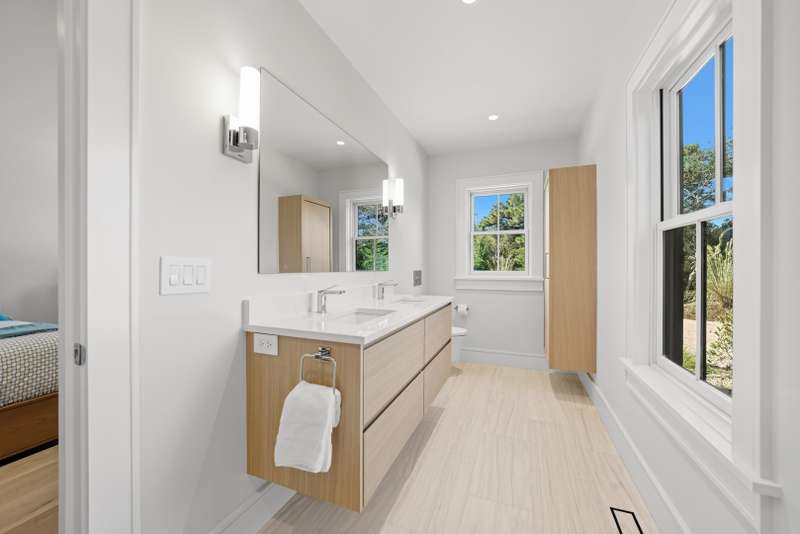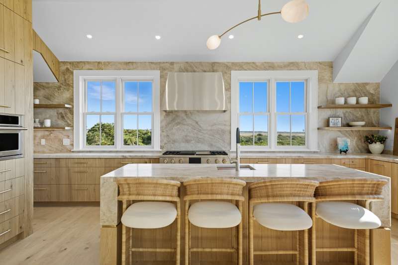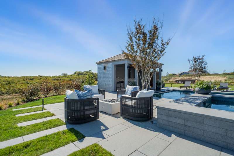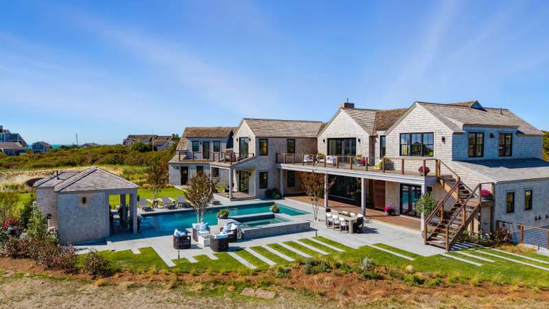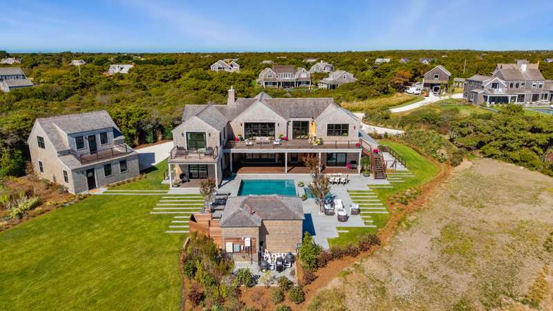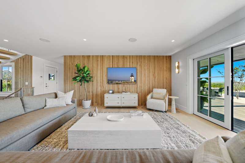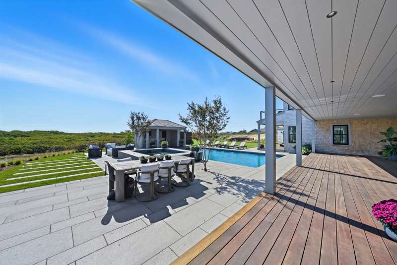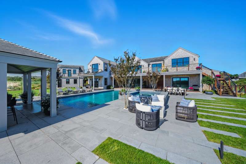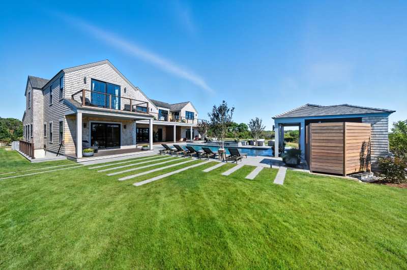Your Beach and Entertaining Lifestyle Estate awaits! With breath-taking views of the ocean, unsurpassed access to the popular surfing beach of Nobadeer, and over 8,000 sf of high end, new construction, executed with a smart contemporary aesthetic, 51 Weweeder ticks every box. Imagine being able to grab a towel and walk out your backyard to the beach located less than 200 yards away. With six en suite bedrooms in the main house, including an entire nanny apartment located on the lower level, plus a separate studio apartment above the two car garage, there is plenty of room to accommodate large groups of family and friends. The exterior entertainment spaces abound. The generous pool (38' x 20') and spa (10' x 8) are a focal point, framed on one side by the first and second floor decks of the house and on the other side by the cabana. Choose between an intimate propane-fired fire pit located on the bluestone patio conveniently sited between the spa and cabana, or put your feet in t