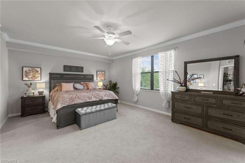 Luxury Coach Home in Bonita National Golf & Country Club! Experience resort-style living in this stunning 3-bedroom, 2-bath COACH home, perfectly situated on an idyllic, corner lakefront lot. Featuring designer finishes and an open-concept layout, this home offers the perfect blend of elegance, comfort, and functionality for both relaxing and entertaining. When you step out onto your lanai, featuring newly updated tile and modern ceiling fans, you’re greeted by a serene retreat where you can unwind while overlooking the lush landscaping and tranquil lake. This private corner lot offers a peaceful escape, perfect for morning coffee or evening sunsets. With the added convenience of full storm protection, you can confidently leave your furniture in place year-round, making this outdoor oasis as effortless as it is beautiful The location of this home is second to none. Located just a short walk to all the wonderful amenities Bonita National has to offer. Your SOCIAL membership gives you access to numerous world-class amenities, including golf during the months of May-October. Enjoy the resort-style lagoon pool with a waterfall, lap lanes, poolside cabanas, and a tiki bar and grill. Indulge in the full-service spa, state-of-the-art fitness center, sauna, and aerobics studio. Play a match on the 8 Har-Tru tennis courts, and get ready for the new pickleball and bocce courts coming soon! The elegant clubhouse offers casual and fine dining, a bar and grill, game rooms, and meeting spaces for social gatherings — all just a short stroll from your front door. Ideally located, you’ll be just minutes from white sand Gulf beaches, RSW Airport, and the endless dining, shopping, arts, and recreation options of Naples and Fort Myers. With easy access to I-75 everything Southwest Florida has to offer is at your fingertips. Don’t miss this rare opportunity to own a serene slice of paradise in one of Southwest Florida’s premier resort-style communities. This home is truly one-of-a-kind — a must-see!