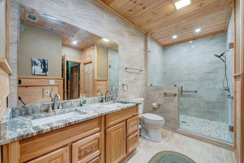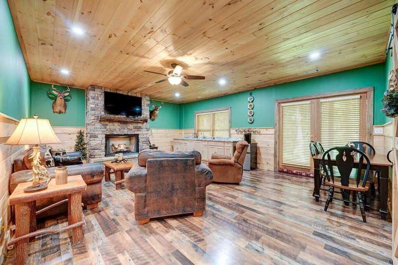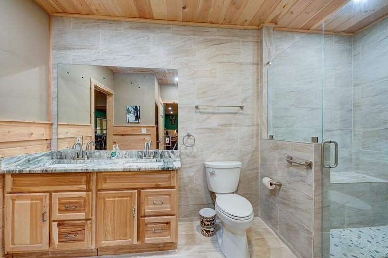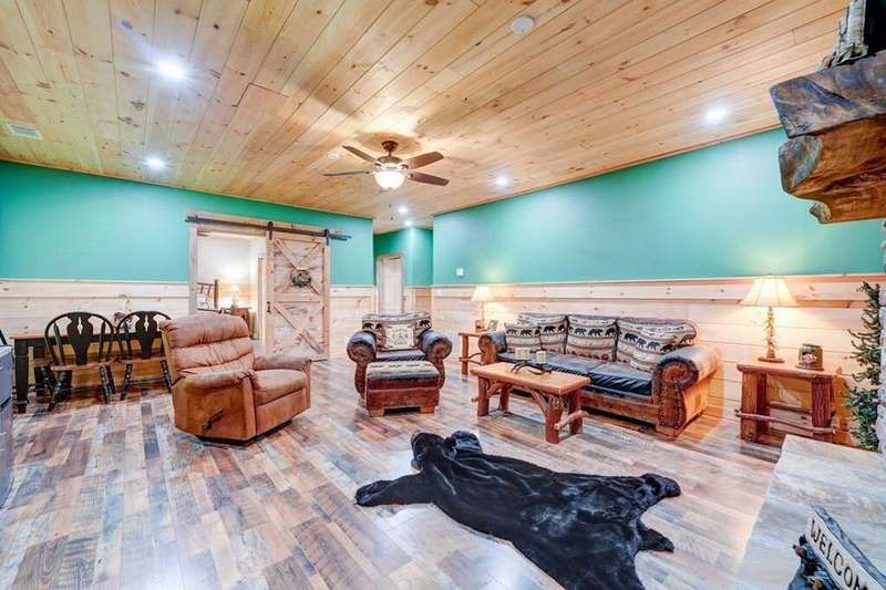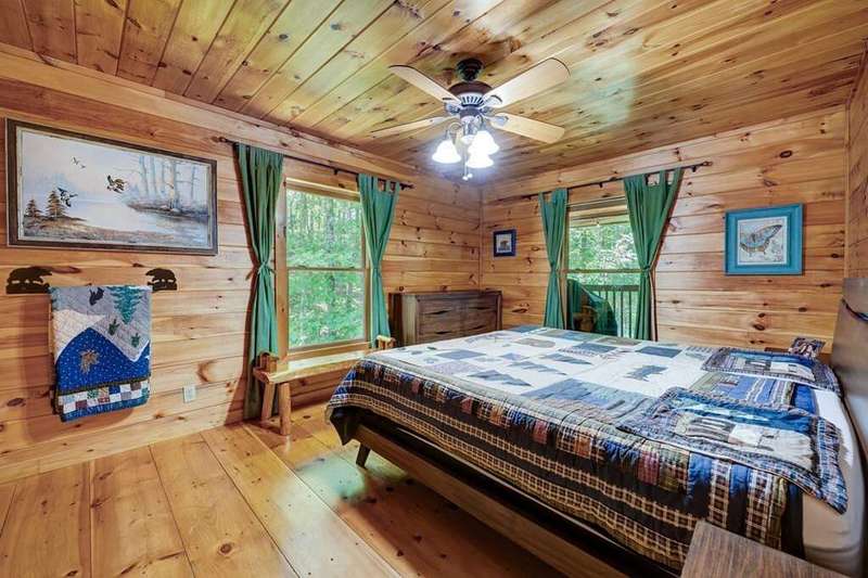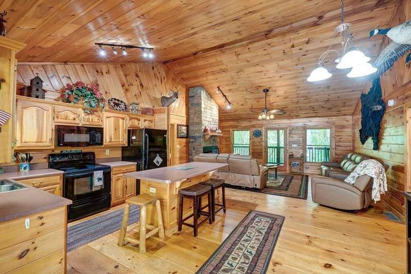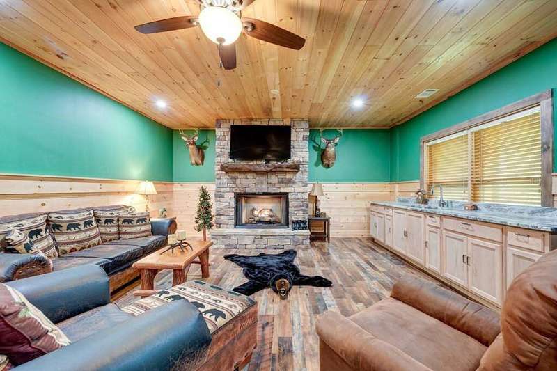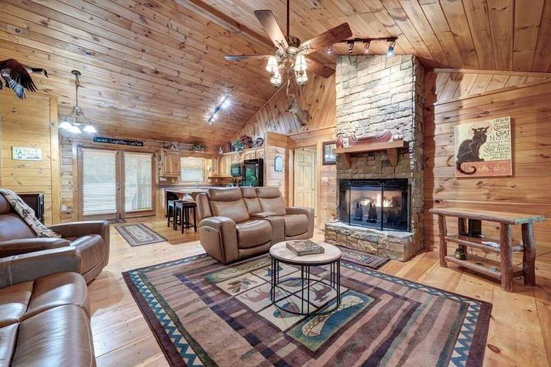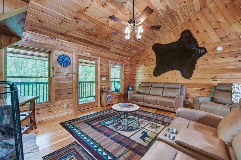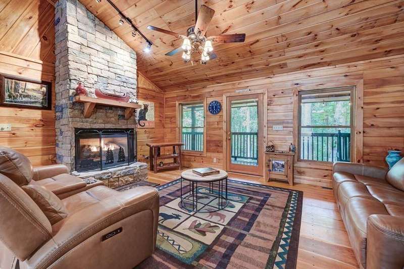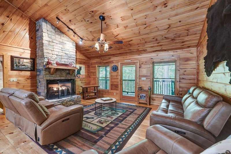 Escape to your mountain sanctuary in the heart of the Aska Adventure Area! This beautifully furnished 3-bedroom, 3-bath cabin is tucked inside a gated community, offering both privacy and peace of mind. Just one minute from the scenic Toccoa River and surrounded by miles of hiking trails and protected forestry land right out the back door, it's a dream location for outdoor lovers. Nestled in a serene natural landscape, this retreat offers tranquil moments and opportunities to watch local wildlife from the comfort of your wrap-around porches. The spacious layout includes a main-level master, two cozy living rooms with stone fireplaces, a well-appointed kitchen, and a fully finished basement with a newly remodeled guest suite featuring a custom-tiled shower, fireplace, mini kitchen/wet bar-ideal for hosting friends or extended family. The community offers an all paved access, making it easy to enjoy the natural beauty that surrounds you year-round. Additional perks include a hot tub, a whole-house generator, and a location perfect for full-time living, a vacation escape, or a short-term rental investment. This is mountain living-steps from adventure, water, and wilderness-in one of Blue Ridge's most sought-after areas. (all decks have been beautifully stained/metal roof pressured washed and screws replaced)