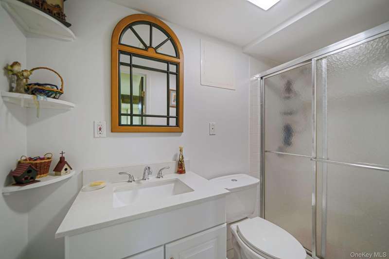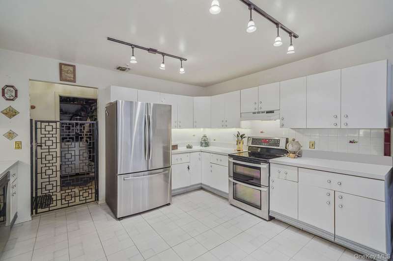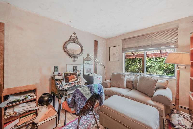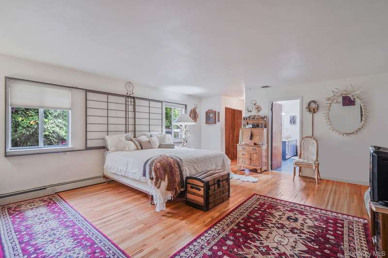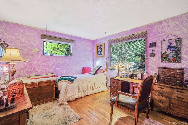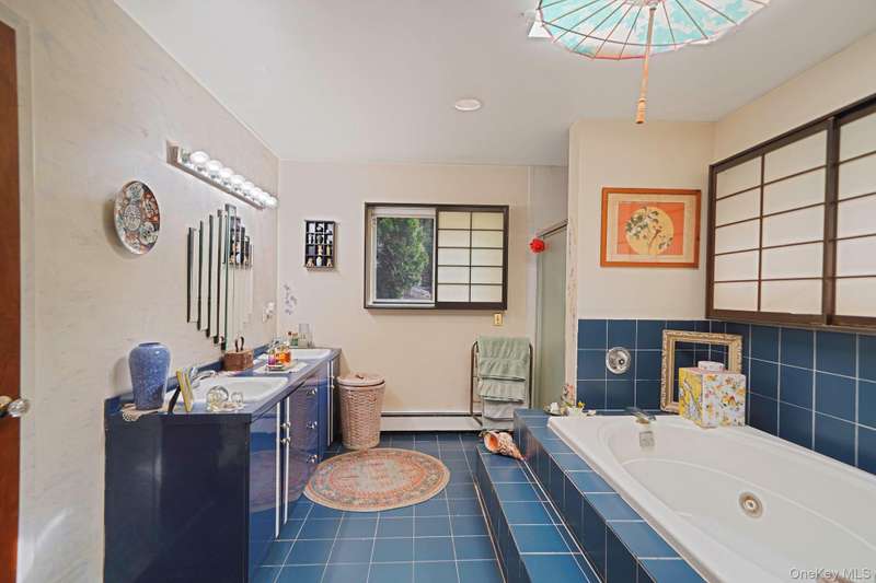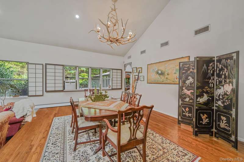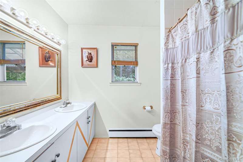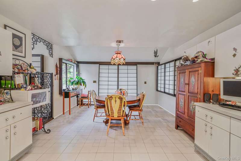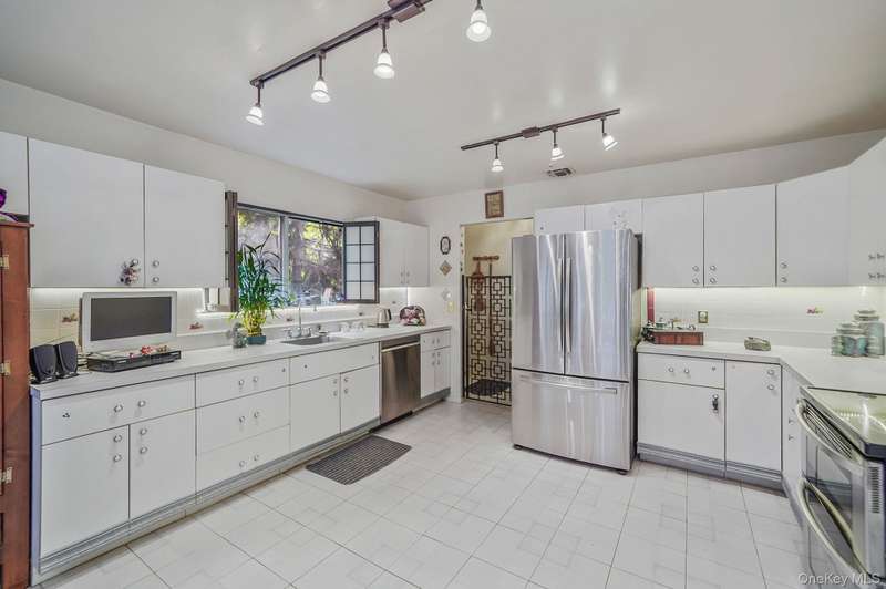 Welcome to this exceptional Fort Salonga residence offering over 4,000 sq ft of living space on a private, wooded acre. This 4-bedroom (with option for a 5th) home showcases an open-concept dining room, living room, and elegant sitting room accented by a piano, all enhanced by soaring ceilings, skylights, and walls of windows that fill the home with natural light. The primary suite boasts a walk-in closet, jacuzzi tub, and glass shower. Enjoy year-round relaxation in the heated conservatory and unwind in the unique two-level sauna. Additional highlights include hardwood and tile floors, stainless steel appliances, custom stained-glass entry doors, a 2-car garage with heated storage, stone terraces, and a basement. Modern comforts include 3 heating zones, dimmable lighting, whole house alarm system, and a whole-house Kohler generator. With over an acre of privacy, handmade stone walls, a dog run with barn, and ample parking, this property is a rare North Shore retreat.