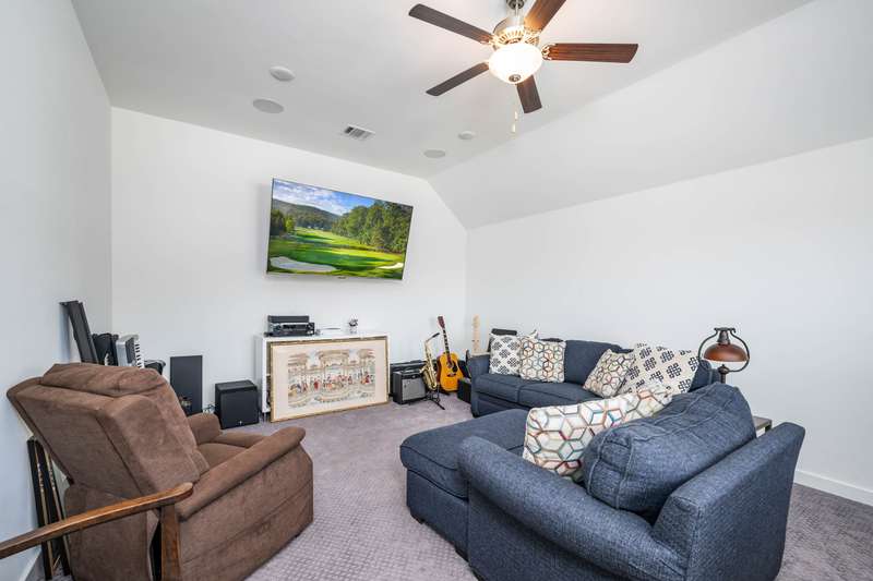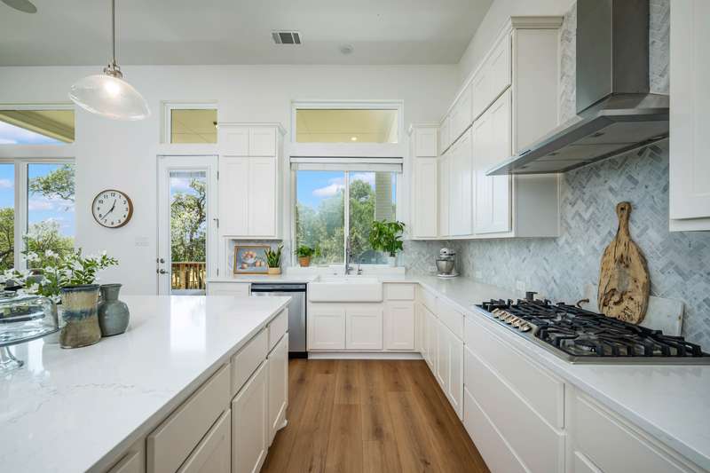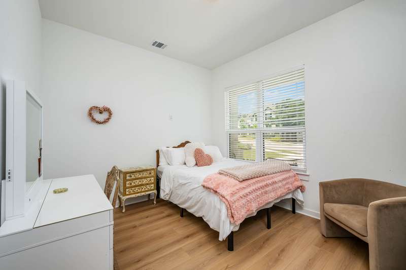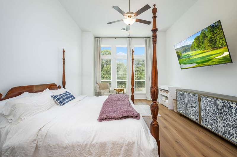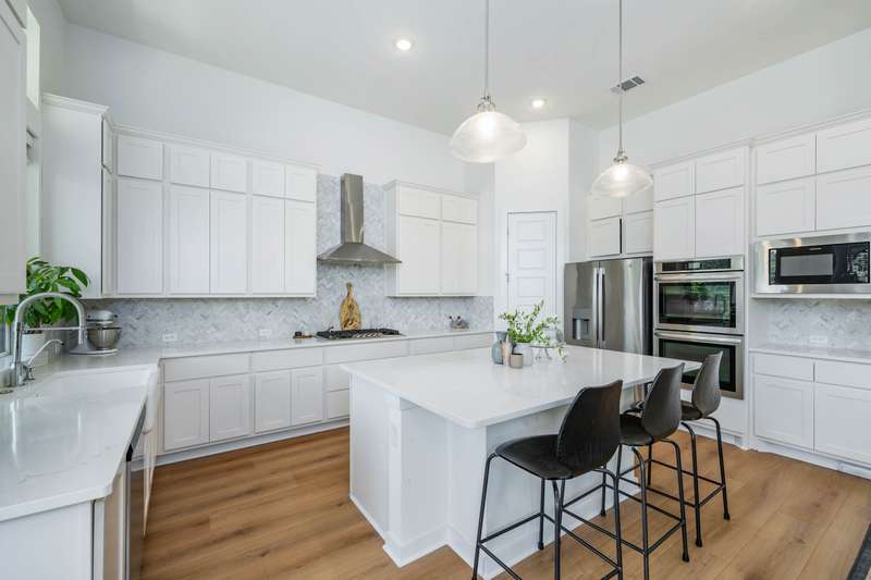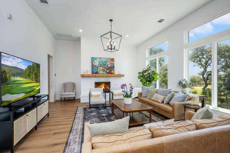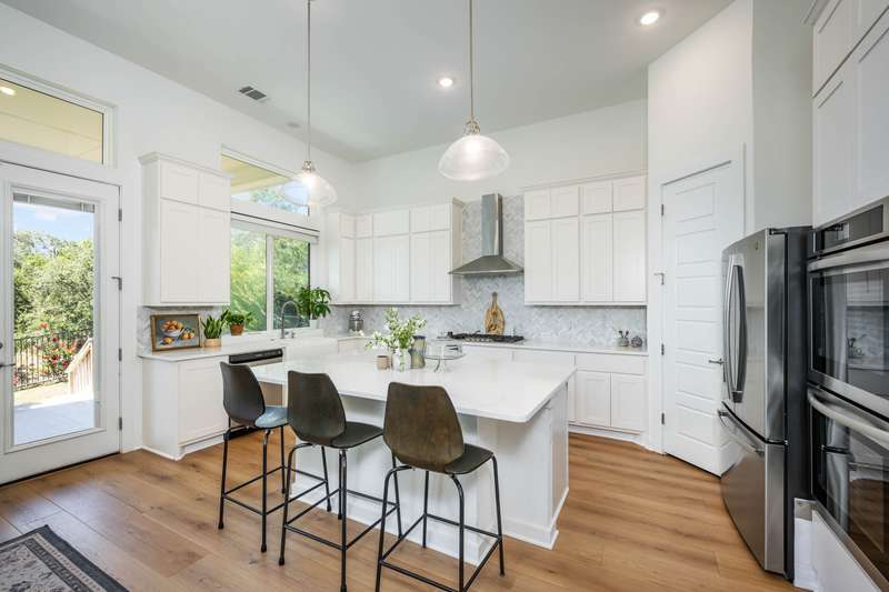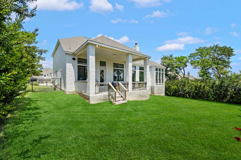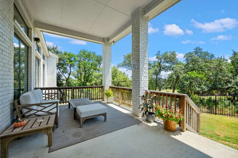 Set on a private greenbelt lot in the back loop of Regent Park, this white brick home marries scale and simplicity across 4,111 square feet. Interiors are grounded by wide-plank white oak floors and filled with natural light. The open layout connects a herringbone-tiled kitchen to casual dining and a living area with fireplace, flanked by formal dining and a private study. Two bedrooms are on the main floor, including a serene primary suite with marble bath and generous closet. Upstairs, three additional bedrooms, two baths, a media room with surround sound, and a second living area provide space to stretch out. Outdoors, the covered porch includes an outdoor kitchen and speaker system, overlooking a deep, fenced yard lined with oaks. Deer drift past at sunrise, cardinals flash through the trees. - 11/4/2025 8:15:25 PM