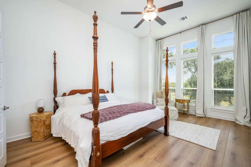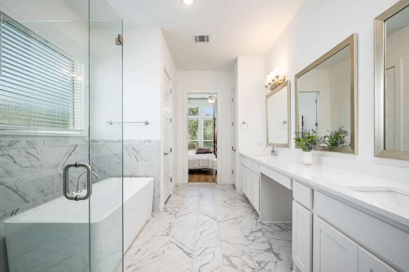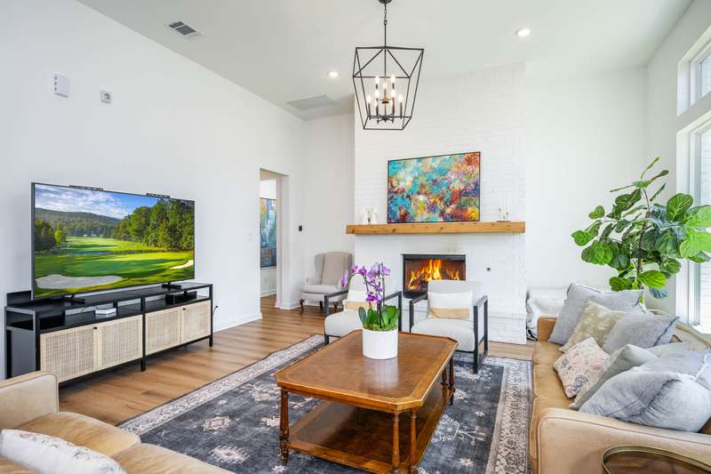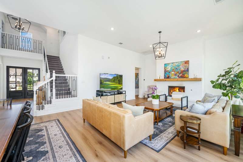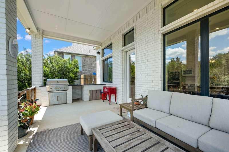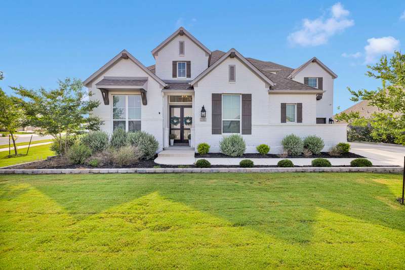 Set on a private greenbelt lot in the back loop of Regent Park, this white brick home marries scale and simplicity across 4,111 square feet. Interiors are grounded by wide-plank white oak floors and filled with natural light. The open layout connects a herringbone-tiled kitchen to casual dining and a living area with fireplace, flanked by formal dining and a private study. Two bedrooms are on the main floor, including a serene primary suite with marble bath and generous closet. Upstairs, three additional bedrooms, two baths, a media room with surround sound, and a second living area provide space to stretch out. Outdoors, the covered porch includes an outdoor kitchen and speaker system, overlooking a deep, fenced yard lined with oaks. Deer drift past at sunrise, cardinals flash through the trees. - 11/27/2025 8:15:23 PM