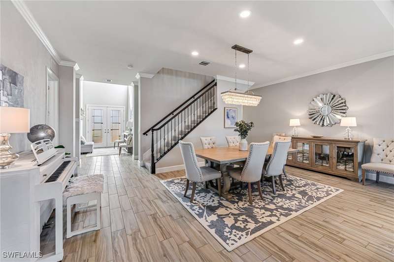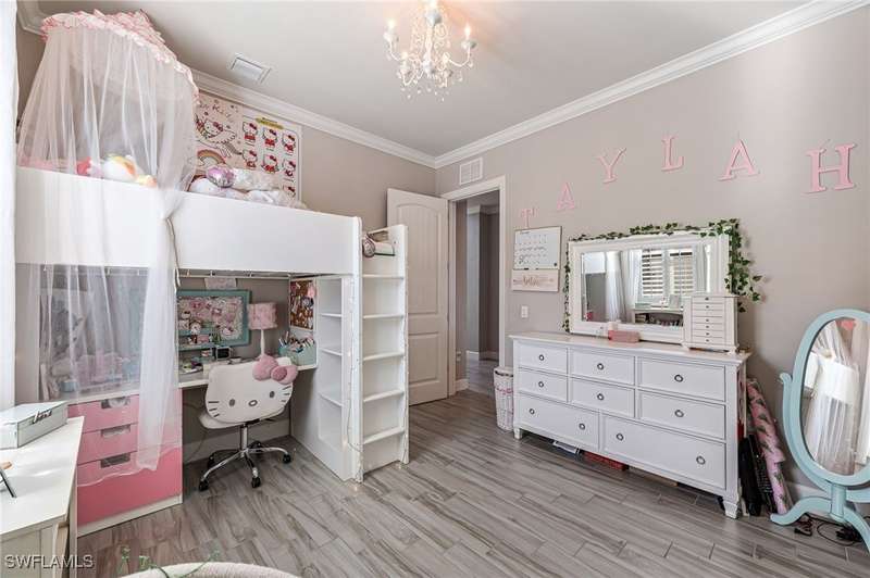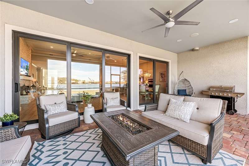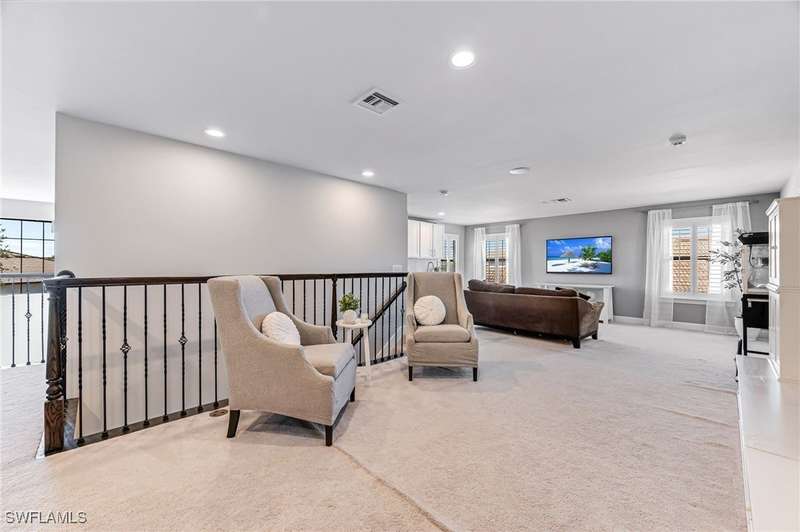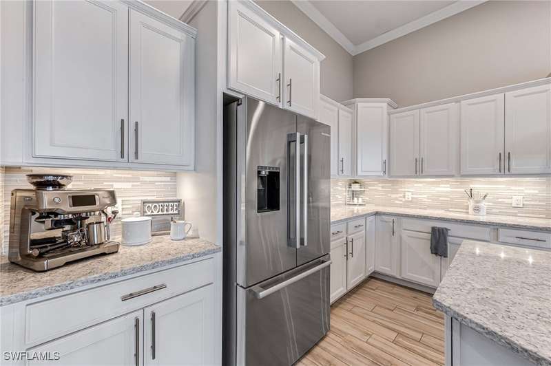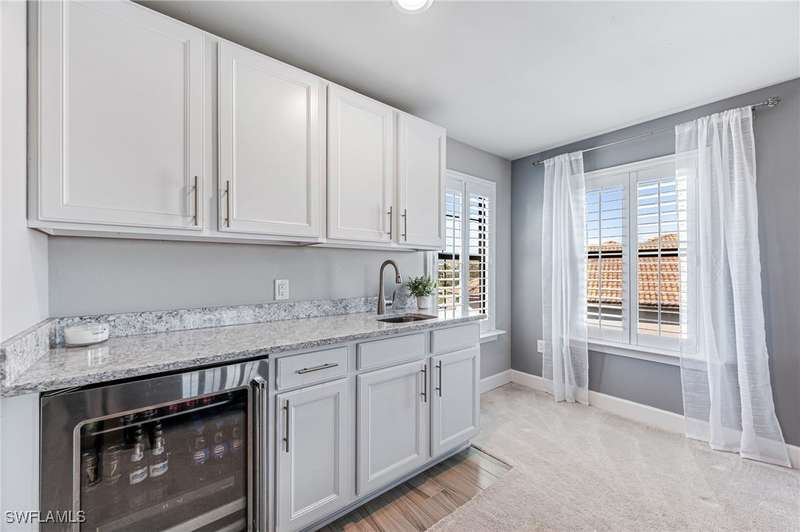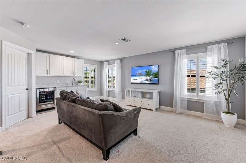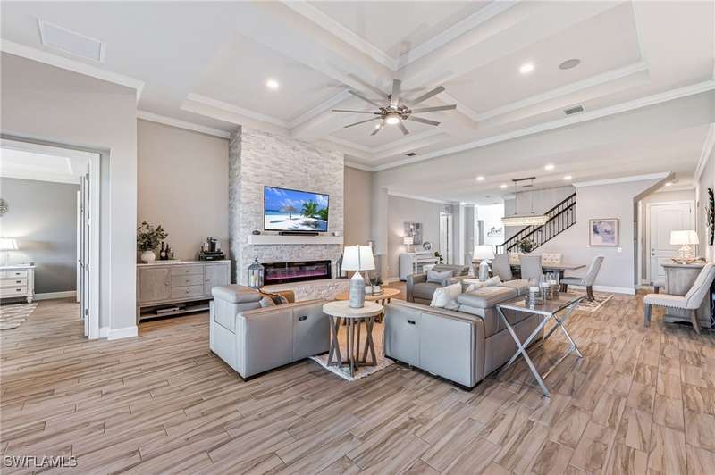 Price Improvement! Welcome to this rarely available Stonewater home in the desirable Corkscrew Shores Community. Situated on the BIG Lake and the largest lot size available, this is one of the most sought-after floor plans in the area. This home offers 5 bedrooms, 4.5 bathrooms and a 3-car extended garage. You will love everything about this home with all the elegant modern upgrades. Modern porcelain tile floors, oversized kitchen island with beautiful quartz counter tops, custom fireplace, crown molding, plantation shutters, high coffered ceilings, high end kitchen appliances are just some of the highlights. This home also has a new water heater, whole house water softener with reverse osmosis in the kitchen, impact doors & windows, alarm system, and built-in Sonos speakers. The expansive backyard has plenty of room for a pool. Lanai has a dedicated bathroom and already plumbed for an outdoor kitchen. With the kitchenette in the upstairs loft, this is perfect place for entertaining or hosting guests. The garage has 6 overhead racks for additional storage and organization. Corkscrew Shores is a gated, resort-style community surrounded by preserves and a 240-acre lake and features a spectacular amenity center with a restaurant and bar. Residents enjoy activities, entertainment, events and sports including pickleball, tennis, bocce, fitness center, movement studio, children's play area, kayak/canoe launch, and fishing pier and more! Conveniently located between Naples & Fort Myers just minutes from shopping, dining, RSW airport, FGCU, golf courses, entertainment at sports and more!