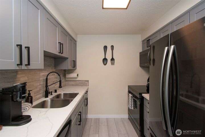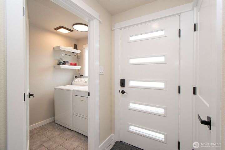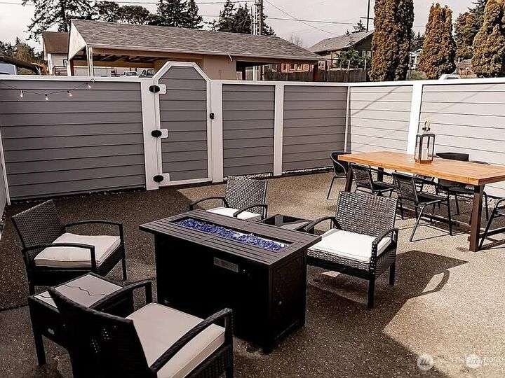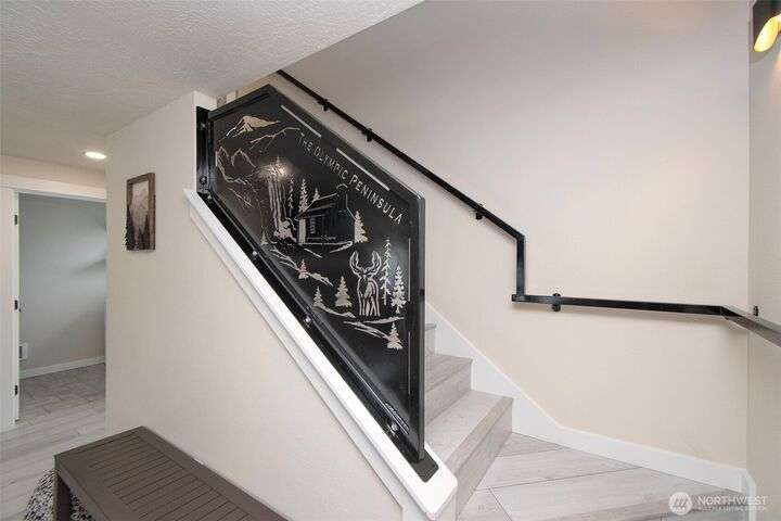 Twin Peaks East — Stylish Duplex with Mountain Views! Fully remodeled duplex with 1,000 sq ft per unit, each offering 2 beds, 1.5 baths, and sold furnished. Located on a quiet west side street in Port Angeles on an oversized lot. Live in one unit and lease the other month-to-month. Each includes stocked kitchen, linens, Smart TV, BBQ, washer/dryer, and carport with storage. Extra alley-access parking available. Enjoy fenced patio with mountain views, laminate flooring, designer lighting, ductless heat pump, quartz counters, and stone accents. Upstairs features two bedrooms, full bath, and a deck with water views. Minutes from downtown, trails, and Olympic National Park—this is a rare chance to own a turnkey duplex in a prime location.