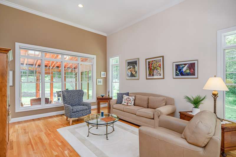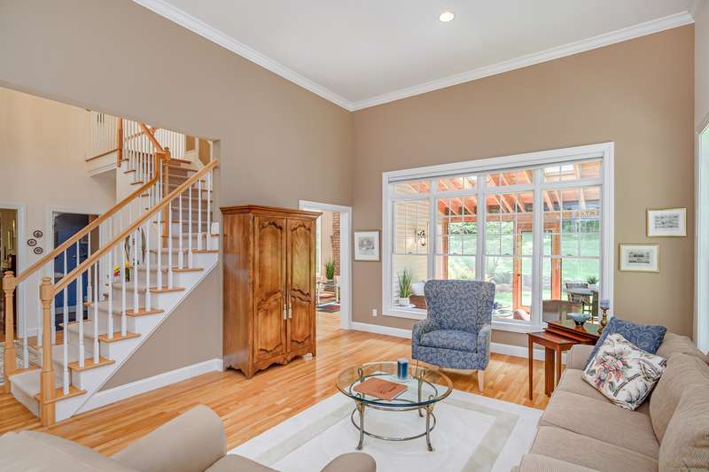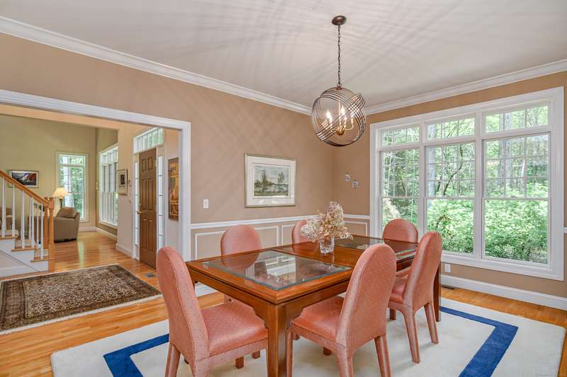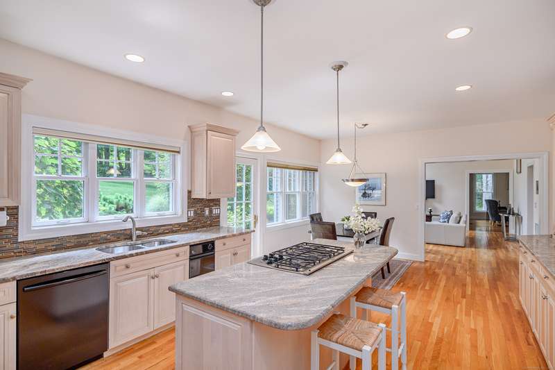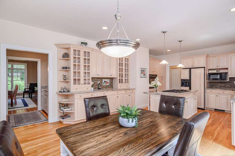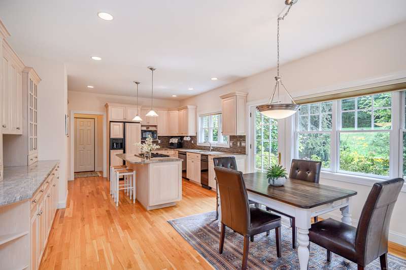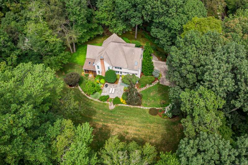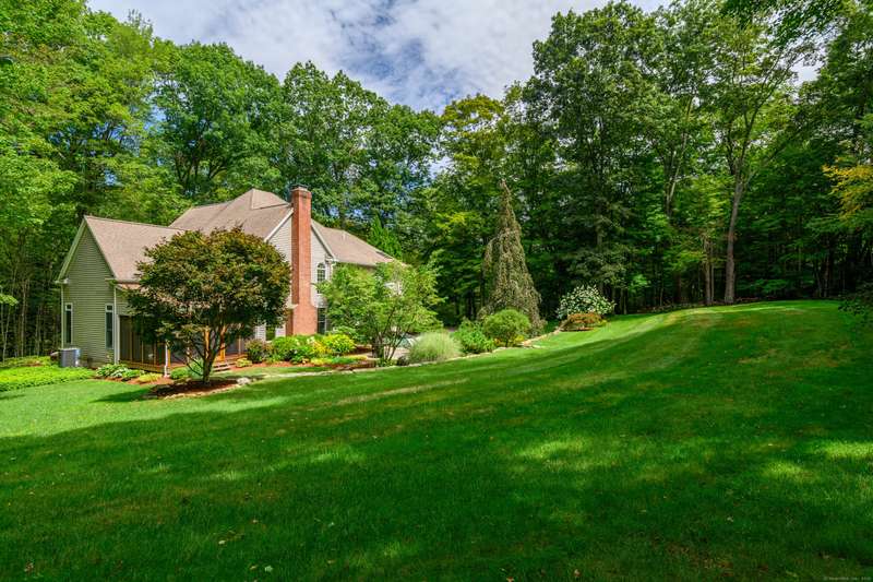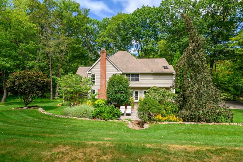 Welcome to 10 Valley Field Road North! This meticulously maintained 4-bedroom, 3.5-bath Colonial is set on two private acres at the end of a quiet cul-de-sac, offering both comfort and privacy. From the moment you enter, you'll appreciate the openness with high ceilings and large windows allowing the natural light to fill the home. The heart of the house is the gourmet eat-in kitchen, complete with a granite island with gas cooktop, and abundant cabinetry. Perfect for entertaining, the kitchen opens seamlessly to the dining room with a built-in wet bar ideal for hosting gatherings. A warm and inviting living room flows into the family room, where a wood-burning fireplace creates a cozy atmosphere for everyday living. From here, step into a new three-season porch that overlooks the expansive patio and beautifully professionally landscaped grounds accented by flowering trees and perennial gardens. Also on the main level is a powder room and a generously sized laundry room. On the upper