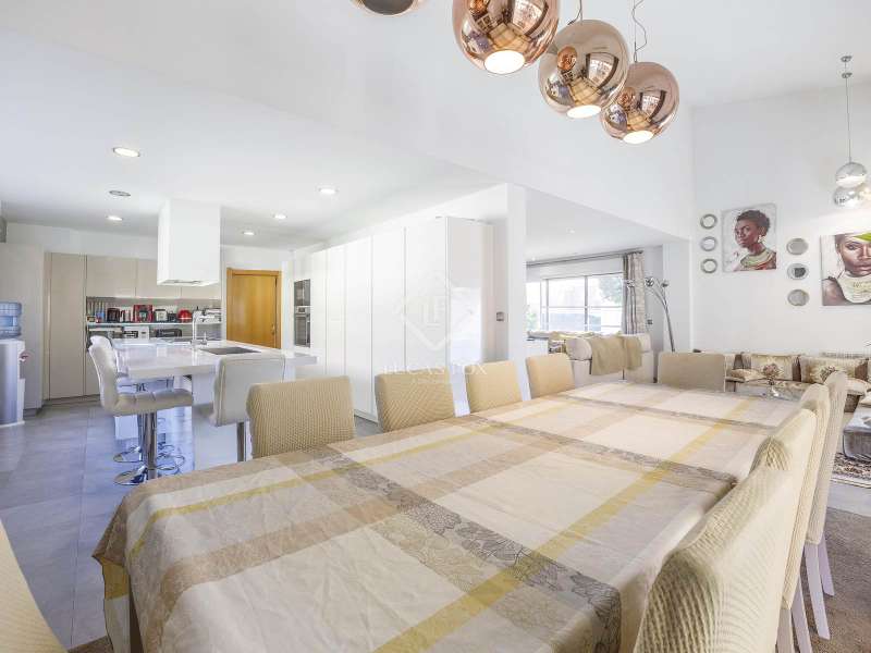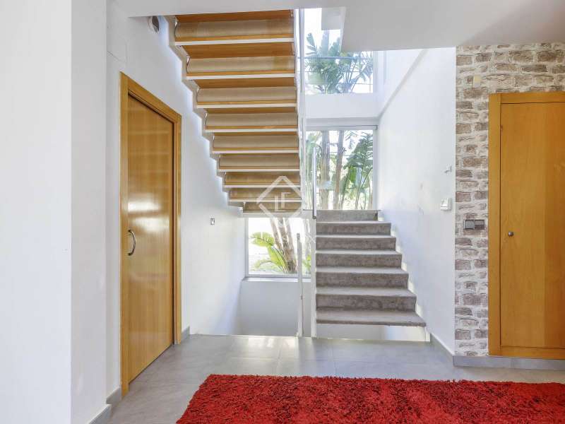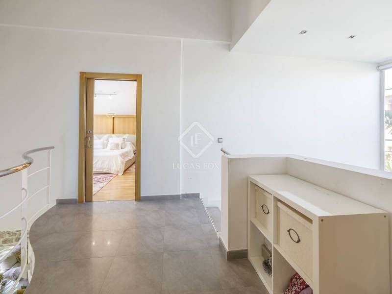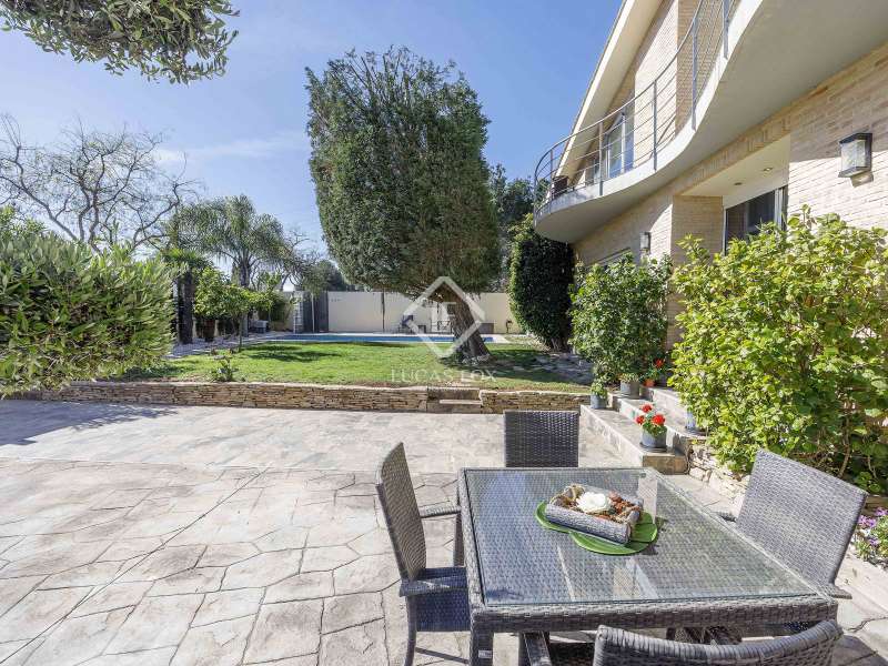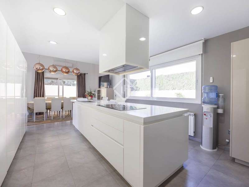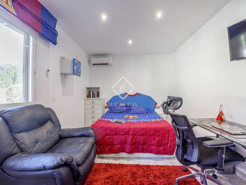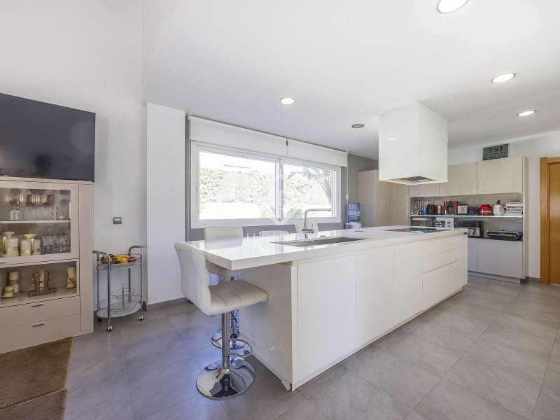 We present this fantastic house for sale spread out over three floors. The house has a comfortable 802 m² plot with an excellent outdoor kitchen and barbecue area that is perfect for hosting family and friends. On Cadastral the house shows 537m2 and on the nota simple it is recorded as 510m2. We enter the house through the main entrance and into the spacious living area. The house has an abundance of light and a nice, peaceful atmosphere. To the right we find two good-sized bedrooms with en-suite, behind the living and dinning area you will find the open kitchen all fitted with modern appliances with a fitted kitchen island and breakfast bar. On the second level there is the main bedroom with an en-suite bathroom and a lovely balcony overlooking the pool, then there are two more double bedrooms with an en-suite bathroom, also with pleasant outside balconies. On the lower level of the house there is a huge garage, which is big enough for five cars with a wardrobe and storage units. Then there is a built-in gym in one of the other rooms, a downstairs bathroom and shower, a storage room and then an impressive cinema/second living room/children’s play area. The house has an outdoor kitchen and barbecue, with an outdoor shade structure and comfortable seating, amazing for hosting or relaxing as a family. At the back of the house there is a nice garden with real grass. The house has gas central heating and air conditioning throughout all the house. Please contact us for further information.