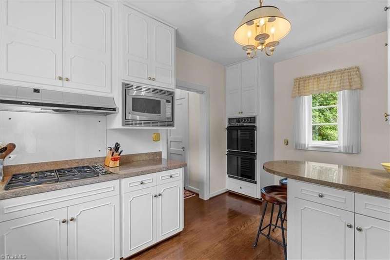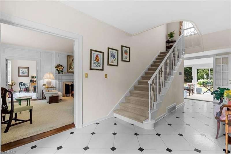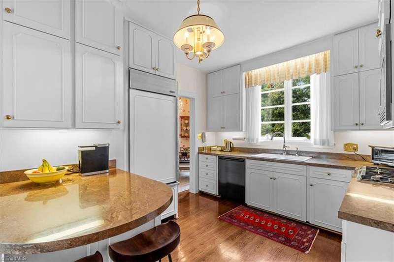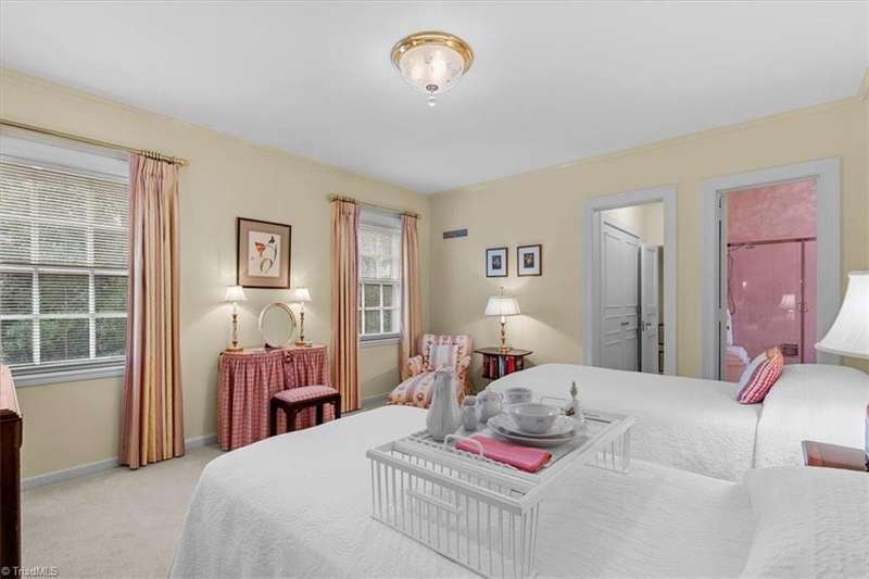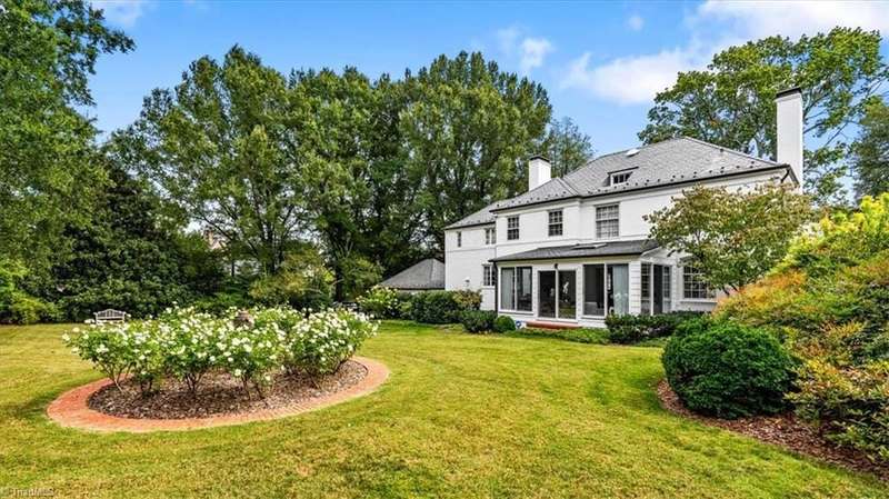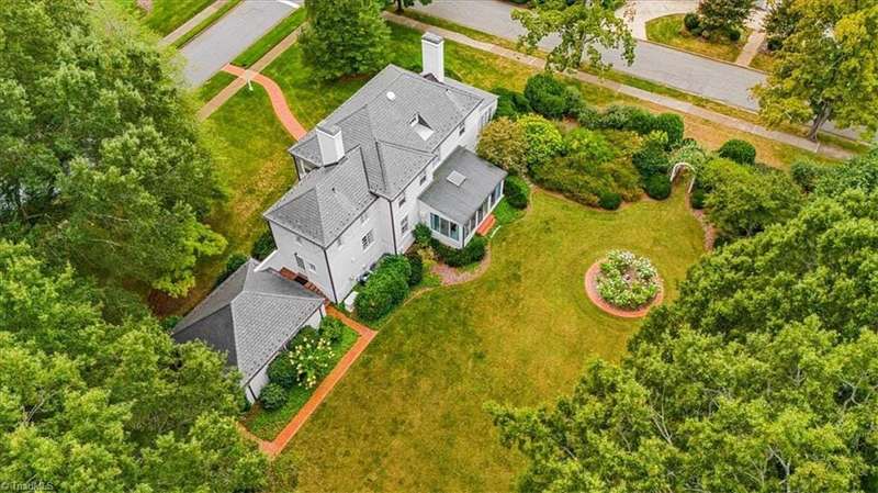 This iconic Old Irving Park home that sits on double lots is known as French Eclectic in style. Built in 1936 and registered on the Irving Park Historic District Homes. Architect was William C. Holleyman, Jr who was known for his style all over Old Irving Park. A symmetrical facade, tall flanking chimneys, steeply pitched Hipped slate roof, arched first story openings, French doors that open into oversized rooms, hardwoods, custom wooden blinds, custom storm windows, original brass on doors, arched windows & exceptional millwork throughout. Breakfast room was the original Butlers Pantry, Copper gutters and downspouts, generator, and original custom shutters in the den. Sunroom that looks onto an additional lot(see remarks)and a beautiful rose garden. One of the finest locations in Old Irving Park as it looks onto the Greensboro Country Club golf course. Restrictive Covenants recorded that home cannot be torn down or subdivided. Ask agent for details. A home that has been deeply loved