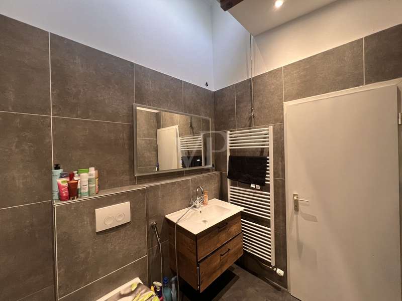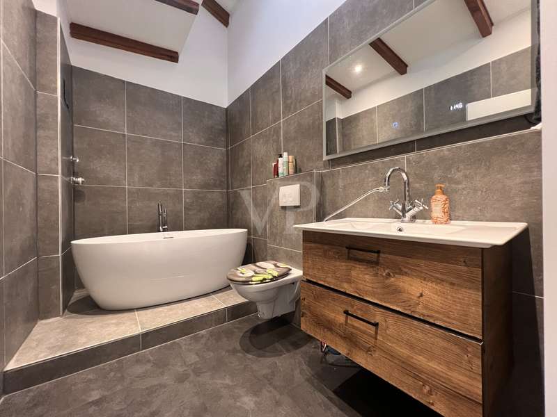 Welcome to this attractive terraced house with a contemporary, modernized character in a sought-after residential area. Completed in 1978, the property presents a successful combination of comfort, functionality and living quality - ideal for couples and families who value a well-kept property with a good room layout. With a living area of approx. 116.35 m², this terraced house offers plenty of space. The 364 m² plot is well used and offers both relaxing hours outdoors and pleasant privacy. The property is part of a homeowners' association, which gives you numerous advantages in terms of communal maintenance and management. The heart of the first floor is the spacious living room with access to the small balcony. The triple-glazed windows on the first floor provide excellent heat and sound insulation. The new vinyl flooring laid in 2022, combined with the high-quality window solution, creates a beautiful living atmosphere. The kitchen is also located on the first floor and is fitted with a wooden window. The two terrace areas are a particular highlight: While the front terrace on the upper floor is ideal for your morning coffee, the partially covered terrace on the lower floor at the rear invites you to enjoy the view of the Weser and spend relaxing evenings. On the upper floor you will find another room, which is ideal as a bedroom. A modern bathroom, which was extensively renovated in 2022, stands out with a free-standing bathtub. The entire upper floor features new ceiling spotlights and exposed beams, which give the room an appealing accent. New floor coverings underline the well-kept overall appearance and ensure a pleasant living experience. The basement rounds off the space on offer and provides two additional bedrooms with direct access to the terrace and a separate cellar room with connections for a washing machine and dryer. A separate guest bathroom is available in the basement for guests or quick everyday tasks. The second bathroom provides flexibility in everyday family life. The property has been well maintained and was last extensively modernized in 2022. Gas heating is provided by a practical central heating system that ensures even heat distribution. In conclusion, the terraced house impresses with its contemporary comfort, good connections and fittings that meet the demands of modern living culture. We would like to expressly point out that the owners do not wish to receive any personal inquiries and therefore ask you to accept their privacy. Please also understand that we would like to receive the property-related financing confirmation from your bank before a possible viewing.