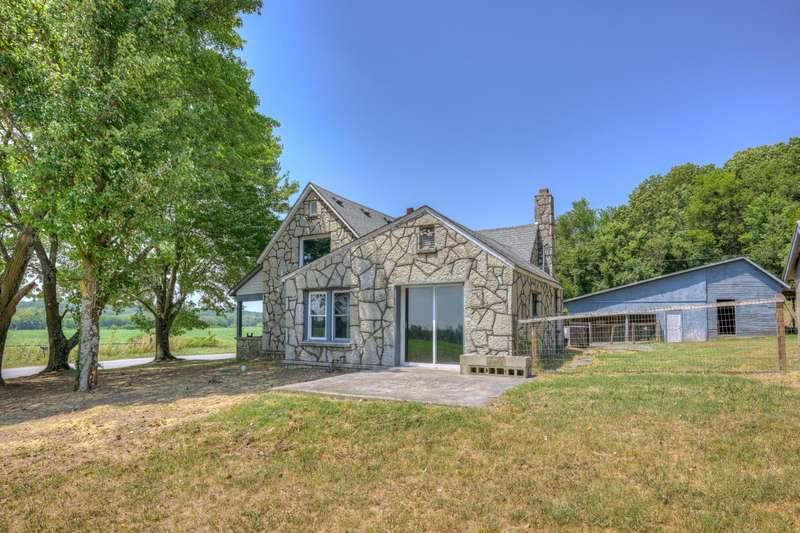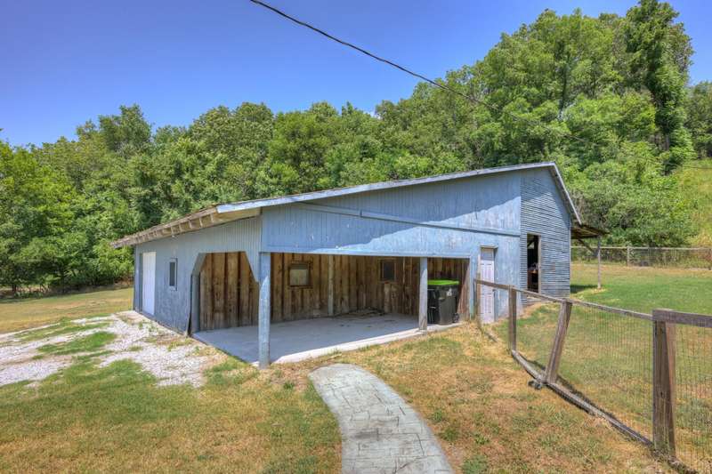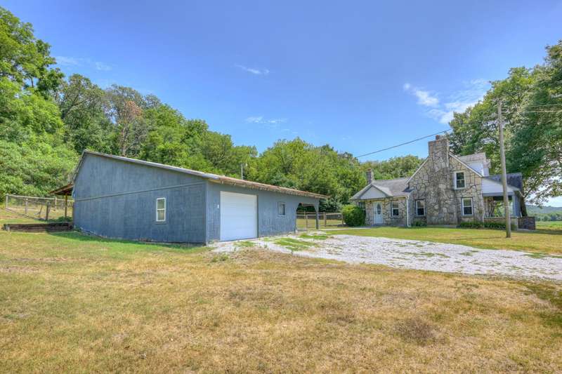 Charming Stone Home on 1.5 Acres in the Ozark Hills - Near Neosho, MODiscover the perfect blend of rustic charm and modern updates in this two bedroom, 1 bath, 1,450 sq ft stone home, nestled in a serene and private setting with sweeping views of the surrounding country fields. Enjoy a spacious living room, a cozy den with fireplace, and a large foyer/dining area. Update kitchen with concrete counters, stained cabinets, and double patio doors letting the sunshine in! Large utility room off kitchen is perfect for laundry and extra storage.A versatile upstairs loft bedroom could easily be converted into two bedrooms, offering flexible living space. The property includes a barn with garage and carport, attic storage,front porch, two inviting patios, and a brand-new septic system.Set on 1.5 recently surveyed acres, this property offers peace and seclusion in the Ozark Hills while remaining just minutes from town and local amenities. New septic and new well pump in 2025