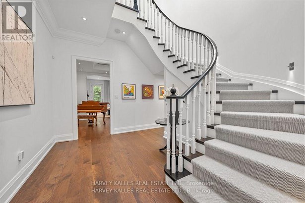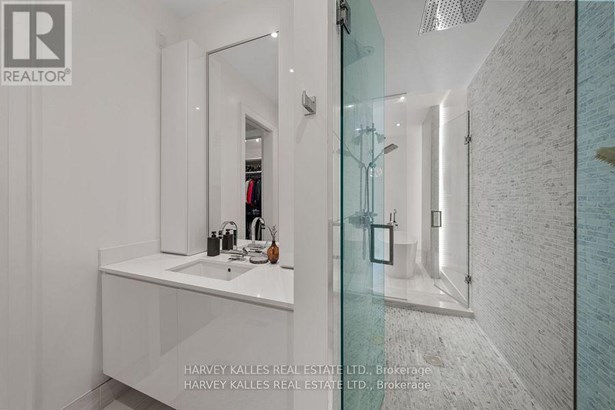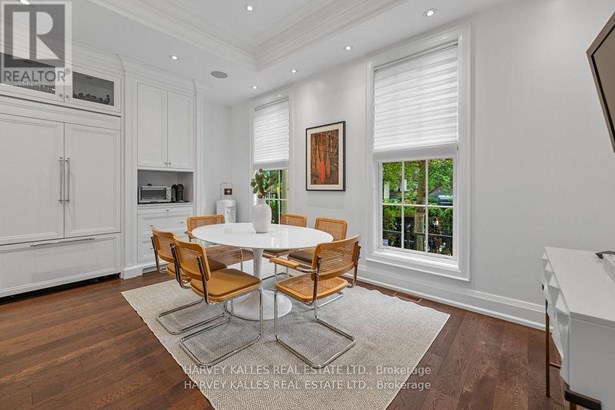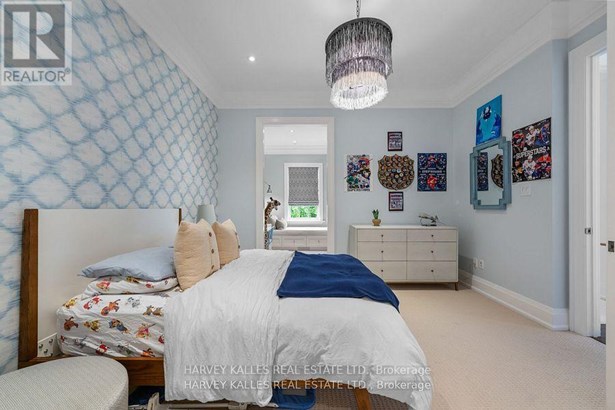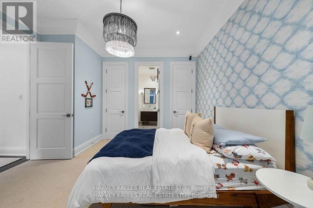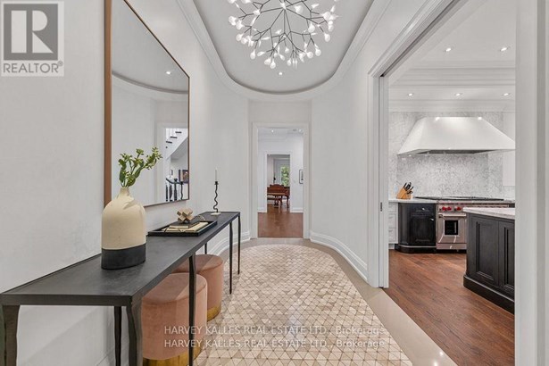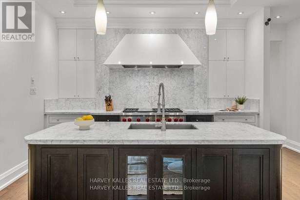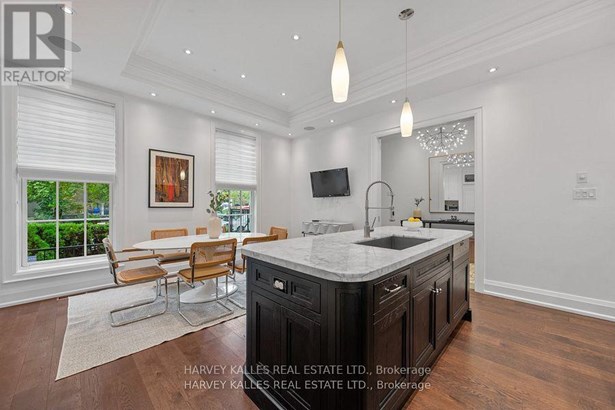 Experience the timeless sophistication of a New York brownstone, reimagined in the heart of midtown Toronto. This bespoke builders own residence showcases hand-finished limestone architecture and over 4,200 sq. ft. of interiors defined by 11 main floor ceilings, elegant proportions, and meticulous craftsmanship. An inviting marble mosaic entry hall introduces the home, where elegant French pocket doors reveal the chefs kitchen. At its centre, bespoke cabinetry is paired with book-matched marble, a large island, and a sun-filled breakfast area. A discreet walk-through pantry offers abundant storage along with a wine fridge, bar, and display. Expansive glass doors extend the living space to a private deck and landscaped yardideal for both refined entertaining and everyday living. Elegant curves throughout, including a sweeping staircase, lend architectural drama, while solid core wood doors and a built-in Bose surround system underscore the homes quiet luxury. A dedicated space alongside the staircase also allows for the addition of a private elevator. Upstairs, with soaring 10 ceilings, the oversized primary suite is a sanctuary complete with an expansive dressing room and dual spa-inspired ensuites joined by a dramatic walk-through shower. Two additional bedroomseach with its own ensuitecomplete this level, including one with a private study ideal for a home office, reading nook, or serene retreat. The versatile lower level features a bright recreation room/gym, guest bedroom, full bath, laundry, and direct access to the double garage. This home delivers a rare blend of convenience and sophistication. Perfectly positioned close to synagogues as well as Torontos elite public and private schools, this residence offers both lifestyle and locationjust moments from downtown. A residence of rare distinction for those who value timeless design, craftsmanship, and modern comfort.