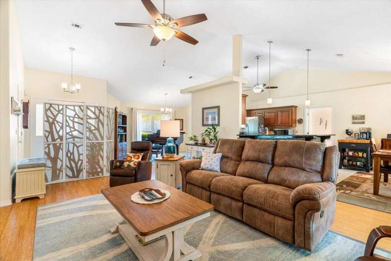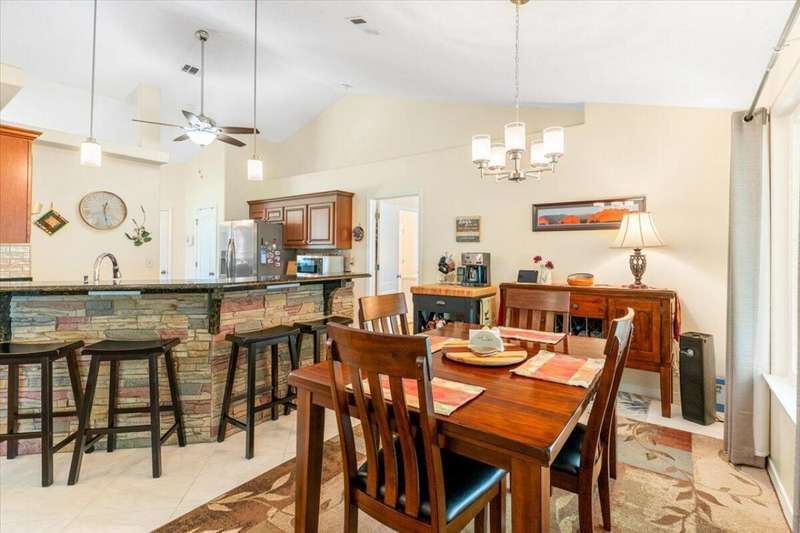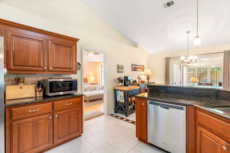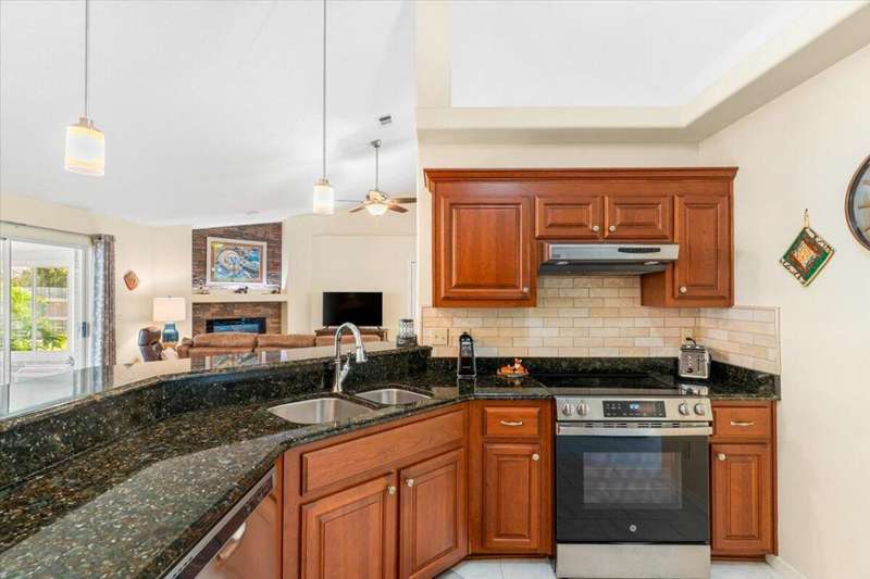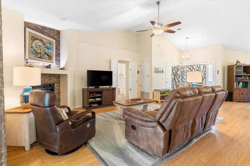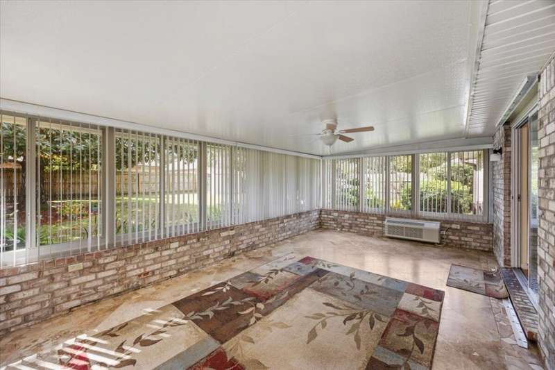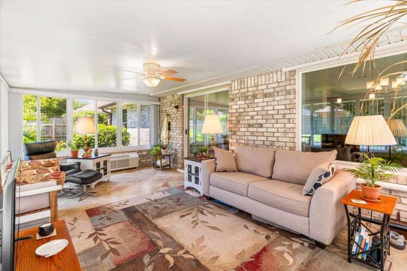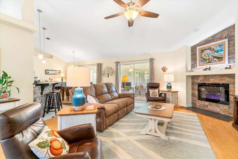 This beautifully maintained 3-bedroom, 2-bath all-brick home offers exceptional curb appeal and a manicured backyard, making it move-in ready inside and out. The bright, open floor plan features fresh neutral paint, newly installed upgrades, including ceiling fans, modern lighting, and carpet in the two guest bedrooms. The spacious living area is highlighted by an electric fireplace with stonework, creating a warm and inviting focal point. The kitchen includes appliances less than four years old, a new backsplash, and updated faucets. A fully enclosed, climate controlled Florida room provides year-round enjoyment and adds flexible living space. Peace of mind comes with numerous key updates: new roof (2020), HVAC system (2020), water heater (2021) windows (2025) and tons more!