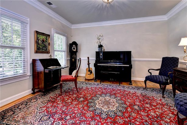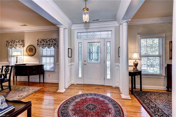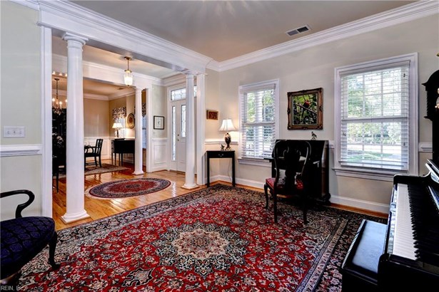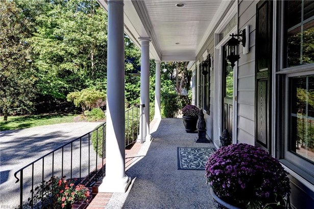 Stunning Southern Living–style Cape Cod in Governor’s Land with a brand-new 2025 roof! Set on a private .56-acre treed lot, this timeless home welcomes you with a wide front porch and elegant moldings throughout. The gracious foyer is flanked by formal living and dining rooms and leads to the heart of the home—a spacious kitchen with center island, pantry, granite counters, Wolf double ovens, Thermador gas cooktop, and tiled backsplash. The kitchen opens to the great room featuring a mahogany inlay floor, built-ins, and gas FP. A light-filled breakfast area with cathedral ceiling adds charm. The first-floor primary suite includes a tray ceiling, walk-in closet, and tiled bath with soaking tub and dual vanities. 2 BRS share a Jack and Jill bath. Upstairs, an in-law/teen suite includes a 4th bedroom, full bath, and bonus room. Enjoy the peaceful deck and serene wooded setting—an ideal birdwatching retreat. 2023 generator, tankless water heater, oversized 2-car garage with workshop.
