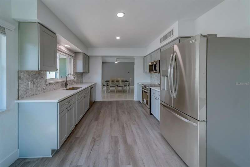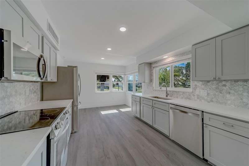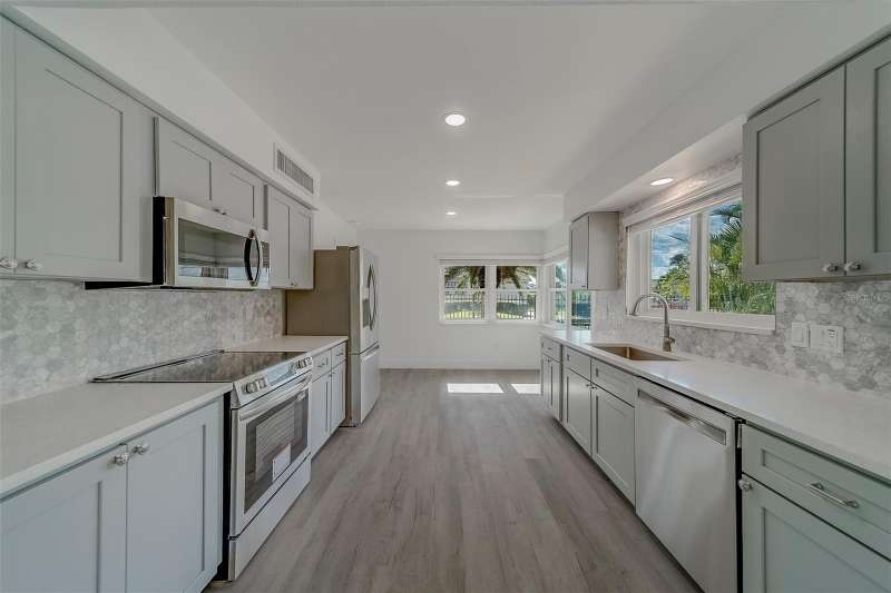 Welcome to 110 21st Street in desirable Belleair Beach, a beautifully remodeled 3-bedroom, 2-bath home perfectly situated just steps from Gulf beach access at the end of the street. Set on a spacious corner lot, this property combines modern upgrades with coastal charm. Every detail has been thoughtfully updated, including brand-new hurricane impact windows and doors, a new hurricane-rated garage door, and elegant finishes throughout. The outdoor oasis features an in-ground pool with a paver deck, fenced yard for privacy, lush St. Augustine grass, and stunning tropical landscaping that enhances the curb appeal. Inside, the open layout and fresh design make this home ideal for everyday living or entertaining. Enjoy the best of beachside living in a quiet, upscale community while still being close to shopping, dining, and all the Gulf Coast has to offer.