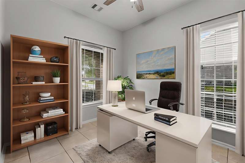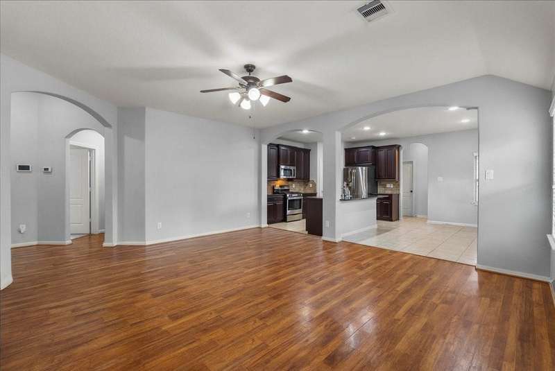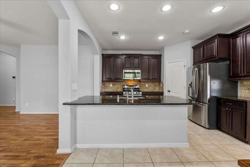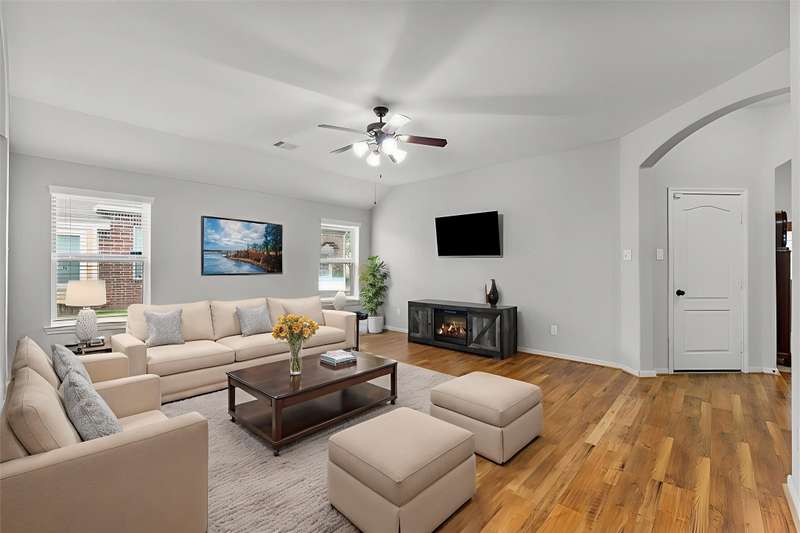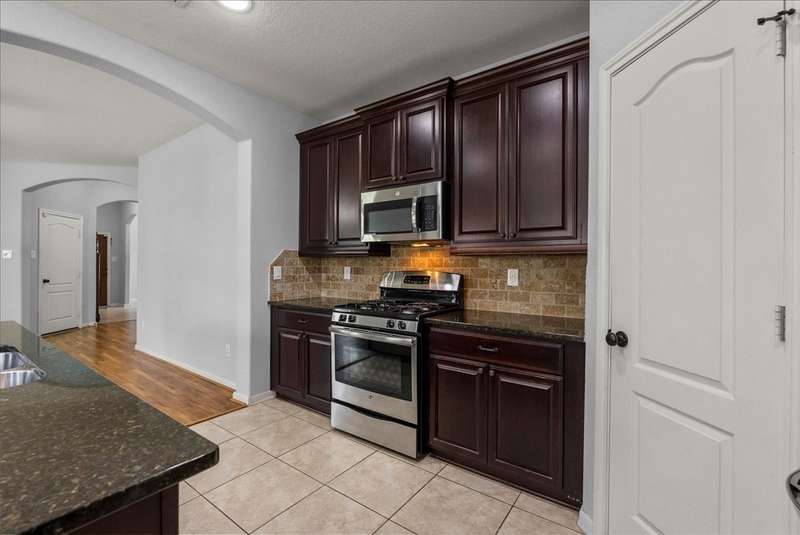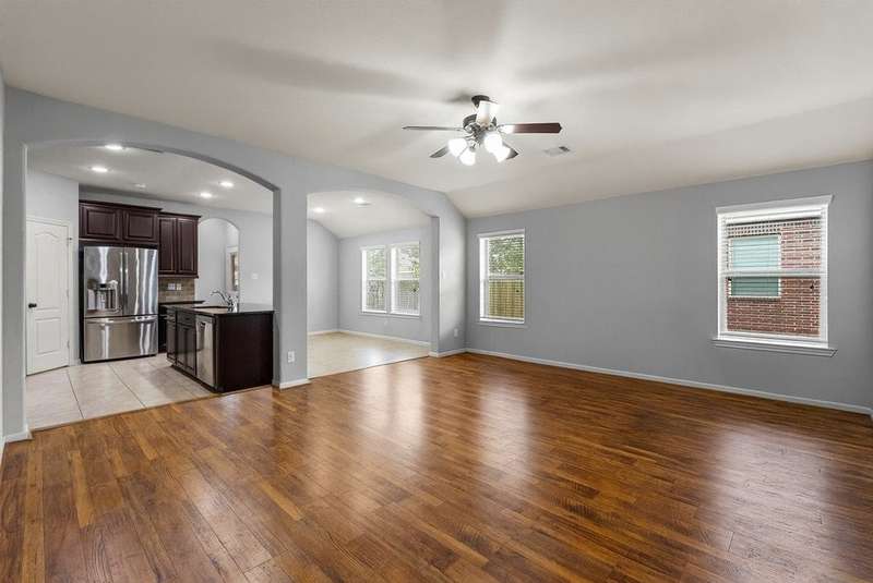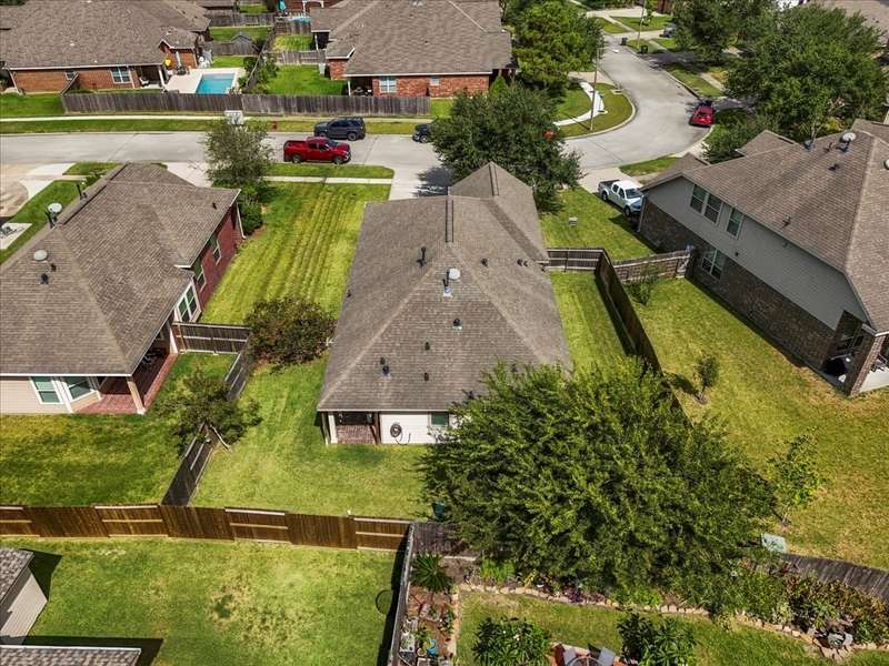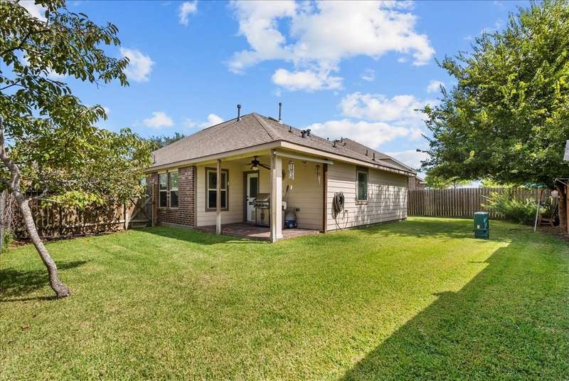 Comfort meets convenience in this well-maintained 3-bedroom, 2-bath home featuring an open-concept layout with spacious living, dining, and kitchen great for entertaining! Gather around the GRANITE ISLAND equipped with S/S APPLIANCES and FRIDGE! A dedicated office/den at the front of the home overlooks the COVERED PATIO, offering a great space for working from home. Durable, wood-like LVP FLOORING runs throughout the main living areas, adding both style and functionality. The primary suite is complete with a TRAY CEILING, DOUBLE VANITY, and a large walk-in closet. Enjoy outdoor living under the covered back patio with a GAS CONNECTION ready for grilling and gatherings. Located just minutes from I-45, popular restaurants, and shopping at Tangler Outlets, this home offers easy access to everything you need whether you are going to the city or Galveston Island. Easy to show — schedule your private tour today!