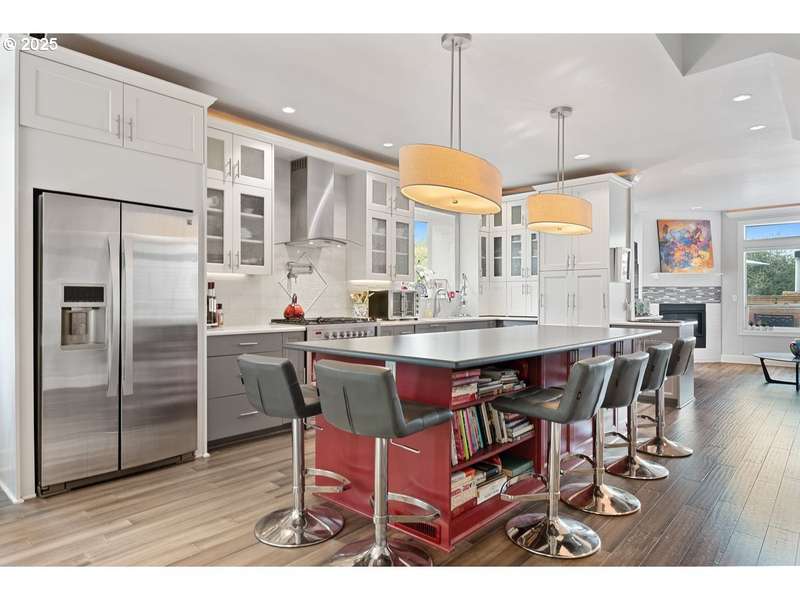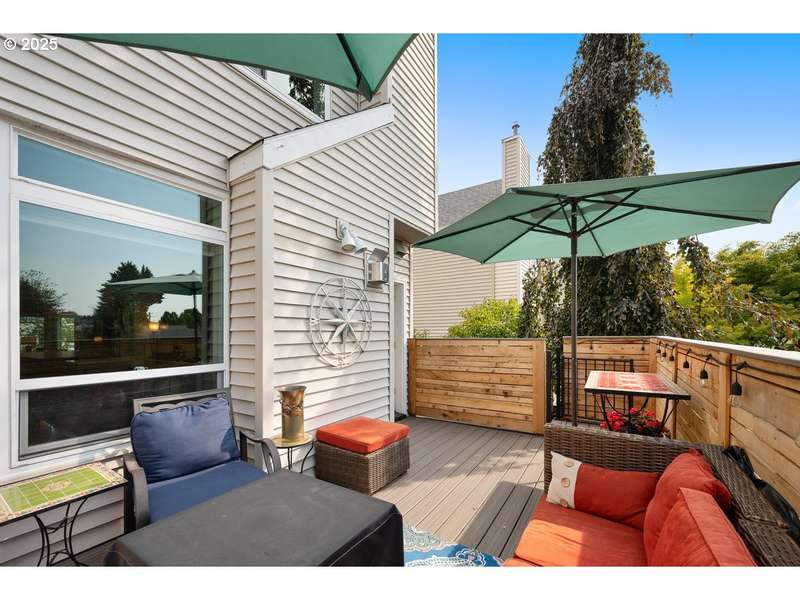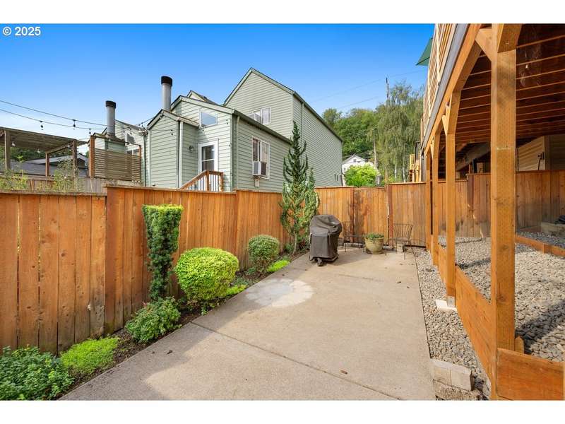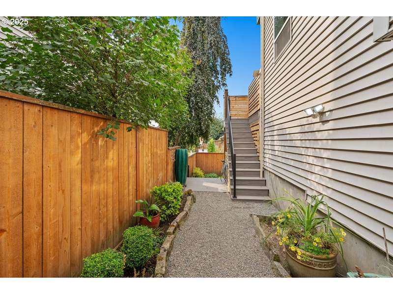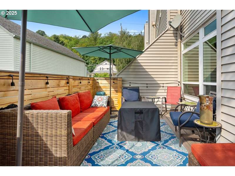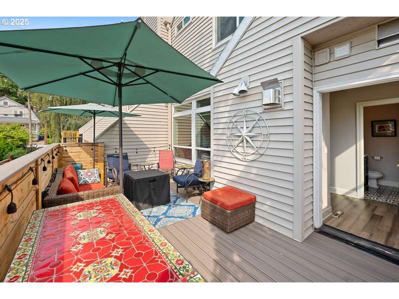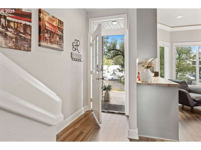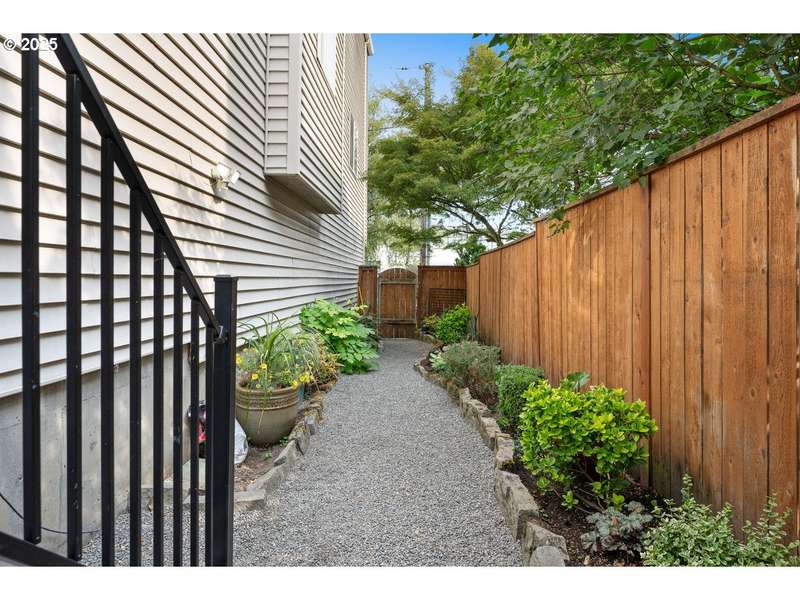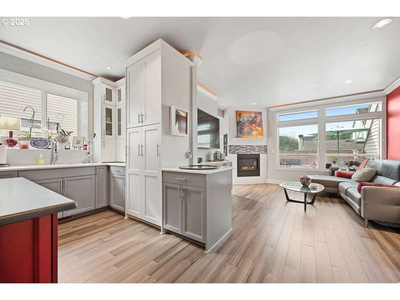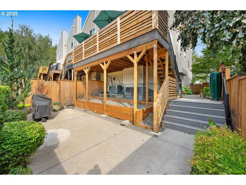 Johns Landing Lovely! This end unit row house will impress with it's beautiful 'street of dreams' remodeled interior. Over $200,000 of improvements & upgrades. You simply must see to appreciate. The main floor living space is now an open concept entertainers dream. Striking wood look LVP flooring throughout, abundant built-ins and storage, recessed and ambient lighting. The custom new kitchen is absolutely stunning and will please any chef. Top quality SS appliances, gas range, pot filler, quartz & soapstone counters, designer tile backsplash, soda/beer fridge, pull out pantries, appliance garage and boasts a kitchen island so incredible it's jaw dropping. The living room is filled with light from the south facing windows. Ignite the cozy gas fireplace when the sun isn't shining. The 2nd floor features freshly installed carpeting, two bedroom suites each with a walk in closet, convenient laundry room on this floor too. The spacious primary bedroom's adjoining bath has double sinks & tile floor. The 2nd bedroom includes custom built-in furniture (wall bed/desk/dresser) for use a guest quarters or flex space. Enjoy outdoor entertaining on the new Trex deck, patio and lovely side yard. Fully fenced. You'll stay comfortable with the newer dual pane windows, gas furnace and central air conditioning. The tuck under garage is EXTRA deep (2 car tandem parking?/workshop/arts&crafts/wine room/pool table?)with plentiful cabinetry for even more storage. The vibrant Johns Landing neighborhood has been one of Portland's most popular areas for many years for good reason. Terrific specialty shops/restaurants/coffee/grocery are convenient. Plus river activities are near by as well. This close-in west side location is a quick commute to all that Portland has to offer for an enriching lifestyle. Easy care maintenance is afforded at Sweeney Rowhouse, a boutique HOA with low quarterly dues. Shown by appointment. Contact your Buyer's Broker today. You'll be glad you did! [Home Energy Score = 8. HES Report at https://rpt.greenbuildingregistry.com/hes/OR10239923]