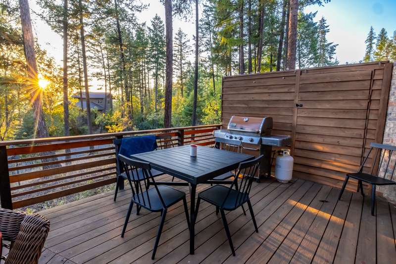 Located in the highly desirable Suncrest neighborhood-known for its private Whitefish Lake access and zoning for short-term rentals-this fully furnished 2-bedroom, 2-bath home perfectly captures the charm of a Montana getaway. Suncrest is a quiet, private, beautifully wooded community offering residents 125 feet of shared lake frontage with swim dock, pavilion with BBQ area, bathrooms, and canoe racks. The home itself feels warm and inviting from the moment you step inside. The spacious great room features floor-to-ceiling windows, vaulted ceilings, a wood-burning fireplace, and an open floor plan that fills the space with natural light. Enjoy relaxing or entertaining on the large front deck with peekaboo lake views, or unwind in the hot tub on the private back deck surrounded by trees. With solid rental history, this home offers both comfort and investment potential. Just minutes from downtown Whitefish and Whitefish Mountain Resort, this home truly offers the best of Montana living. Updated kitchen, baths and flooring and plenty of storage. Outdoor enthusiasts will appreciate nearby hiking trails through the adjacent Iron Horse community, as well as the convenient walking and biking path to downtown Whitefish.