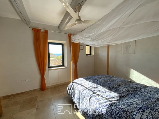On the second floor, a light-filled bedroom opens onto a solarium, a privileged space to savor the view and enjoy the sun. A 20 sqm room, adaptable to your desires, as well as a bathroom, bring even more comfort to this house.