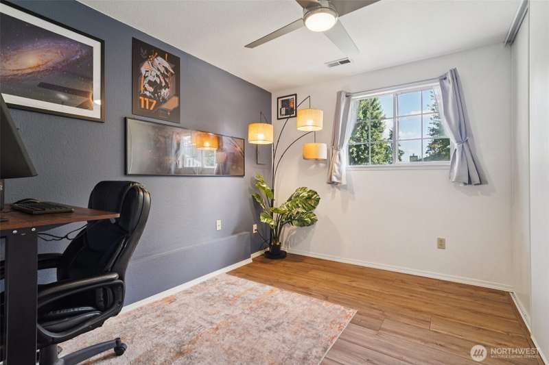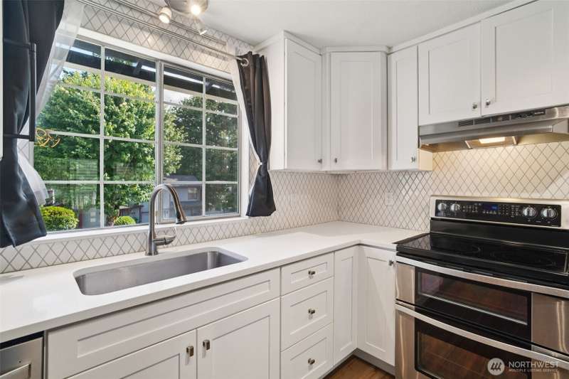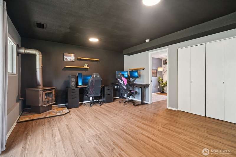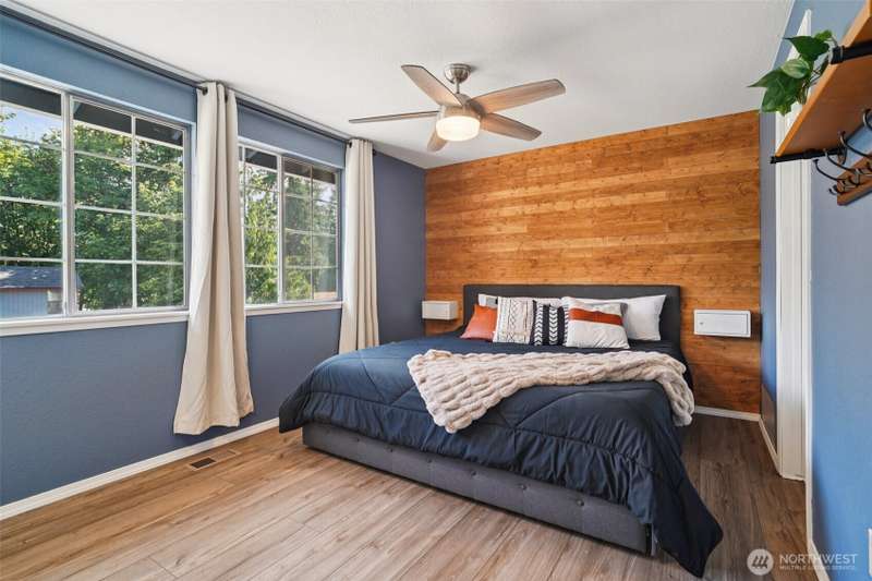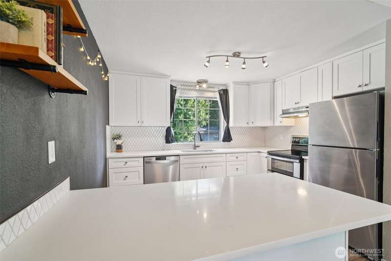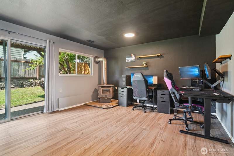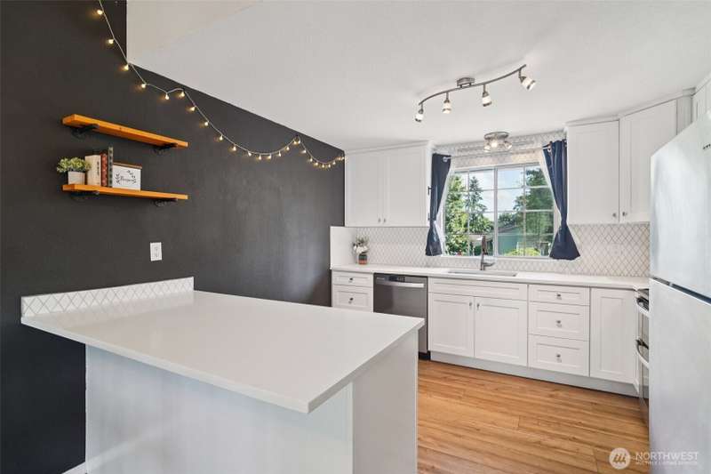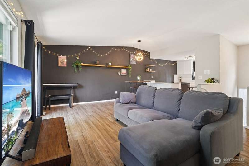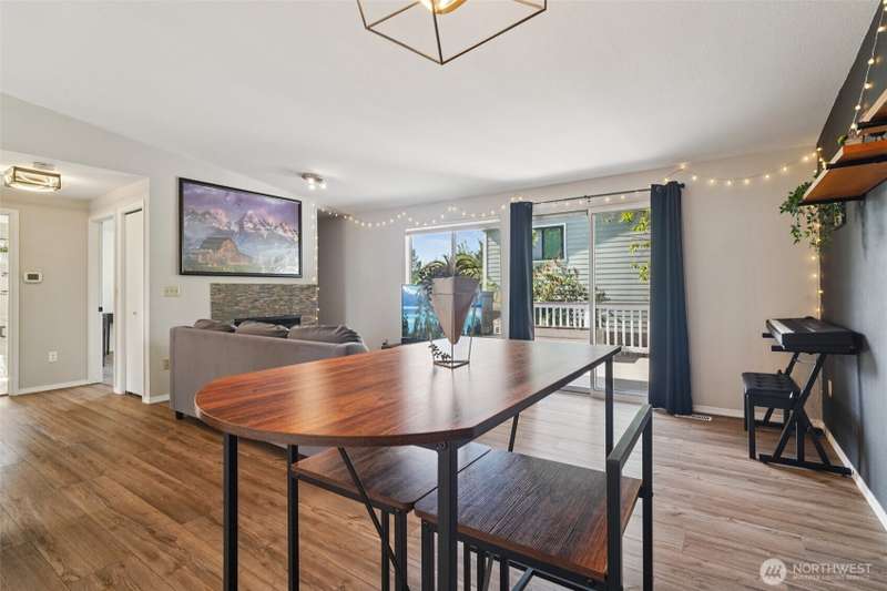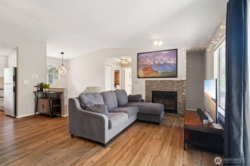 VA assumption loan available with a 4.75% rate for qualified VA buyers! Beautifully updated home on a 7,459 sq ft corner lot in prime Covington! Enjoy vaulted ceilings, energy-efficient lighting, and a modern open layout. The stunning kitchen features quartz counters, new cabinets, and SS appliances—including brand-new fridge, oven, dishwasher, washer & dryer. Relax by the wood-burning fireplace or step out to the large composite deck. Main bathroom offers a jetted tub, custom tile, and updated vanity. The lower level includes a second living area with wood stove. Mature landscaping adds charm, with a blooming Wild Cherry tree and vibrant rose bushes. Extras: new AC ($10K), EV-ready panel, 1-year-old fence, and fresh exterior paint.