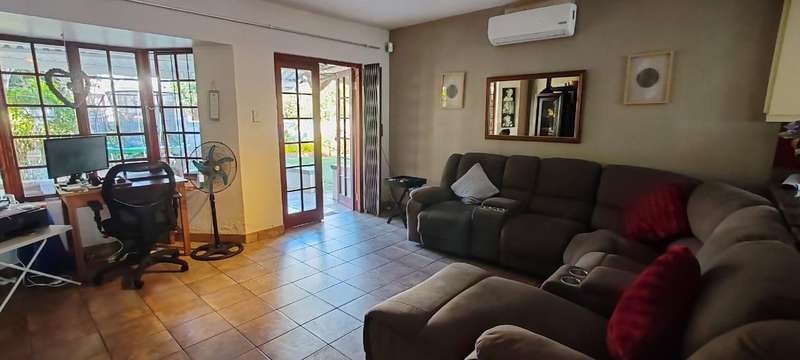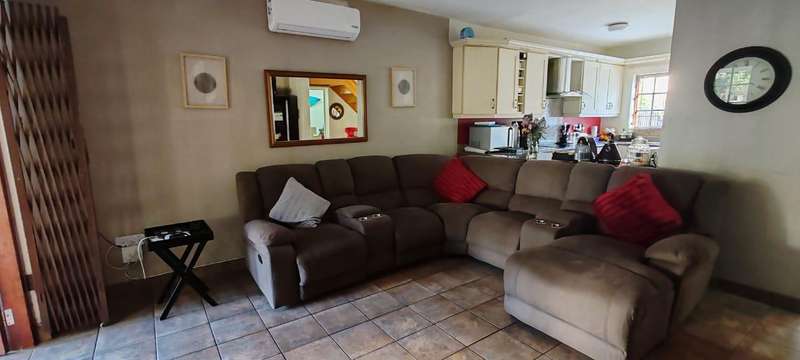 This stunning townhouse offers: - Secure and beautifully maintained complex - Modern luxury and everyday comfort - Open-plan kitchen and spacious lounge with air conditioning - Private undercover patio overlooking lush garden - Converted garage space (flexible use: 3rd bedroom, office, or study) - Dedicated laundry room - 2 bright & airy bedrooms with built-in cupboards and air conditioning - Full modern bathroom with bath and shower - Guest toilet conveniently located near entrance - 2 parking spaces (1 undercover by the garage & another unreserved parking space next to the unit) - Communal playground within the complex - Optional security and camera system (R499/month) - Utilities billed separately A perfect family home!! Contact me to schedule a viewing and make this lovely house yours!
