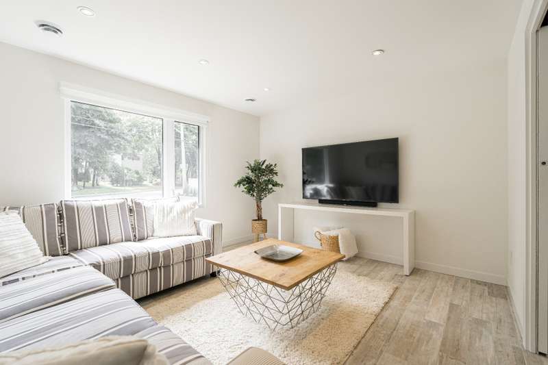 Stunning, fully rebuilt in 2017, this 3+2 bedroom bungalow is ideally located in the sought-after Pointe-Claire South. Featuring 4 full bathrooms, radiant heated floors on both levels, new windows, roof, heat pump, electrical, plumbing, and so much more. The open-concept living area boasts cathedral ceilings, a propane fireplace, and high-end finishes throughout. Enjoy an oversized garage with ample storage and a private backyard patio, perfect for entertaining. Book your visit today!