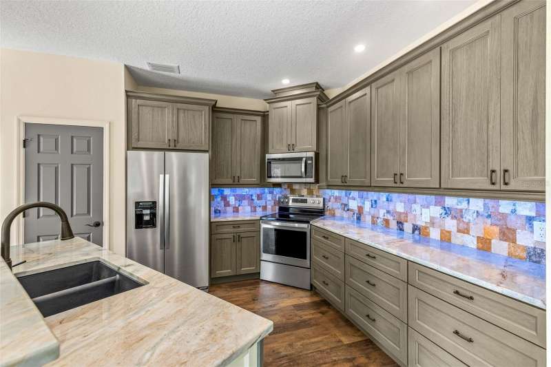 •• HUGE PRICE DROP •• NOW COMPLETE! BRAND NEW MODEL HOME 01 NOV 2024!! GENUINELY OUTSTANDING CONSTRUCTION!! TURN-KEY READY! The St Marks floor plan is a true 5 BR, 4 full bath home with a 2 car + tandem space garage located in the beautiful new Stonegate community in Lecanto. The home is minutes from the newly opened extension of the Suncoast Highway making it an ideal location. Standard Features supersede virtually all other new construction builds. Large windows allow for an abundance of natural light. Main floor ls an open plan kitchen/living/dining. The kitchen has custom 42" cabinets with soft-close hardware, a large kitchen pantry, granite counters, travertine tiled breakfast bar and backsplash, separate dining area and a complete Whirlpool™ stainless steel appliance package. Additional downstairs space includes a separate 5th full bedroom/flex space with French doors, a large walk in closet and a separate full bath along with a beautiful, spacious downstairs laundry room. A large, finished concrete patio is situated off of the rear sliders. The upstairs owners retreat BR has volume ceilings, custom lighting, plant shelves, a large walk in bathroom w/dual vanities, large custom cabinets, garden tub, separate lighted shower, toilet and a large walk in closet. Of the 3 additional upstairs bedrooms, one is ensuite while the other two share a full bathroom. The shared bath has hall access and direct access from the large front bedroom. While the Standard Features are too numerous to mention, interior highlights include: a complete stainless steel kitchen appliance package, tray ceilings in select rooms, granite countertops in the kitchen and bathrooms, raised panel solid wood cabinets w/slow close doors & drawers, 12-14 mm laminate flooring in main living areas and bathrooms, carpet in upstairs bedrooms and solid core raised panel interior doors. Structural/mechanical highlights include: rain gutters, epoxied floors in the garage, custom built garage cabinets to contain the HVAC interior unit and hot water heater, closed cell spray foam insulation throughout to increase energy efficiency, Low-E energy efficient double pane windows, reinforced ceiling fan hookups, stone accents on the front of home, finished concrete patio in the rear and an additional tandem space within the 2 car garage. The current HOA is $125/mth. HOA fees cover community landscaping, maintenance, electric & reserves. The builder does not intend to build another St Marks floor plan making this a one-of-a-kind. Floor plan and HOA docs are available. Convenient to Tampa/TIA and famed recreational areas within Citrus county. This gem is offered by a longtime, established builder of over 30 yrs. If desired, the builder is offering a pool package with a retaining wall or an enhanced outdoor living area at an additional cost. TRULY IMMACULATE and a MUST SEE! Community pool and clubhouse are in planning stages, no finish date as yet. CDOM reflect a longer than desired build time owing to shutdown delays. Builder states, do not submit offers site unseen. Easy to show. This is not a distressed sale.