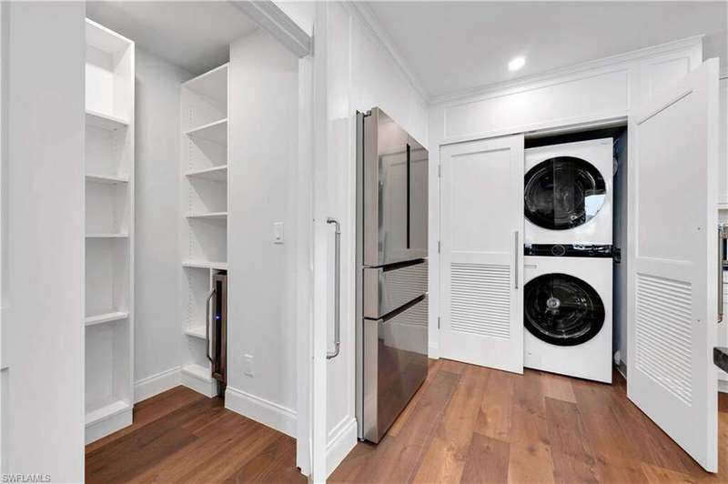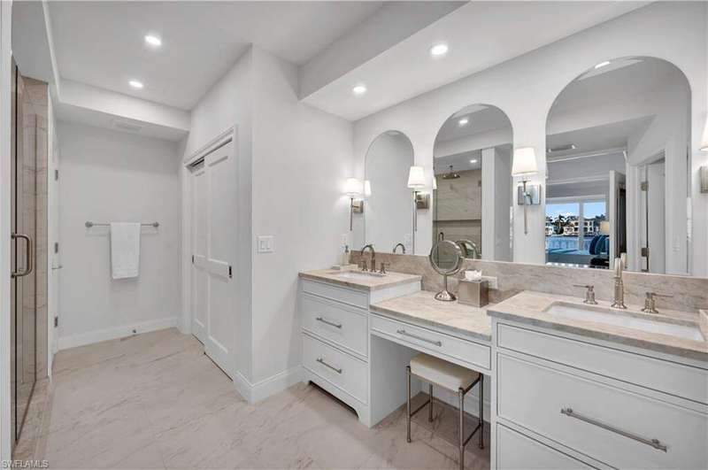 BOATERS DREAM- Boat slip available for renter! Nestled on its own private island, Venetian Villas stand as one of Naples' most distinguished gated communities. This exceptional first-floor condo, featuring 2 bedrooms and 2 full bathrooms, is quietly situated within the coveted Park Shore neighborhood, offering unparalleled privacy and serene bay views. Residents of Venetian Villas enjoy exclusive access to Park Shore's deeded beach, just across the street, as well as a short stroll to the vibrant dining, shopping, and cultural experiences of Venetian Village. The community also boasts a wealth of amenities, including a pristine pool overlooking Venetian Bay, garages, optional boat slip leasing. The chef-inspired kitchen is a highlight, featuring Bosch stainless-steel appliances, custom cabinetry, quartz countertops, and an induction stovetop. An oversized pantry with double doors and a tucked-away wine fridge. The living area, with its sweeping bay views, offers a cozy fireplace, custom built-ins, and a warm, inviting ambiance. The spa-like primary bathroom is equally impressive, with Taj Mahal Leathered Quartzite Counters, a luxurious oversized shower with multiple showerheads, a Toto smart toilet, and two custom his-and-hers closets. The second bedroom also enjoys stunning bay views and includes a large custom closet and an ensuite bathroom with Bianco Vena Oro Counters. Currently used as a home office, this room does have two pullout chair beds. Do not miss out on this amazing opportunity to rent in paradise.