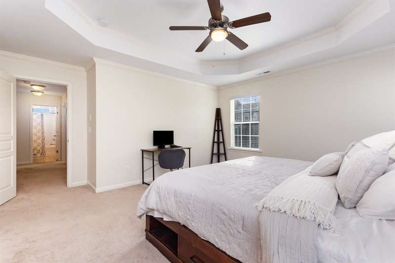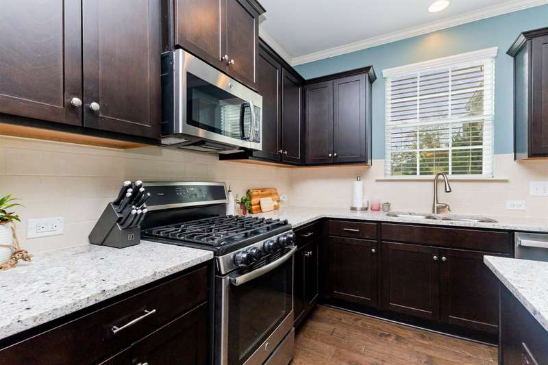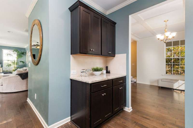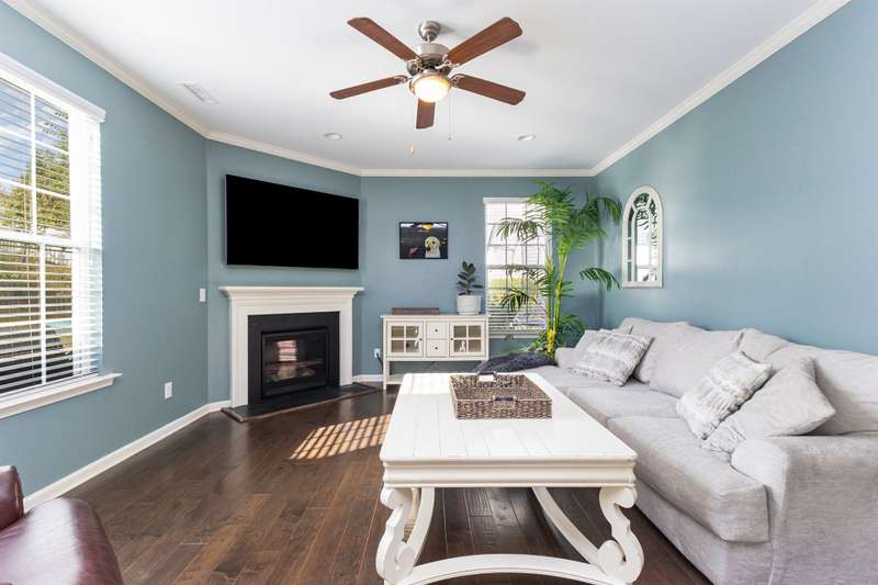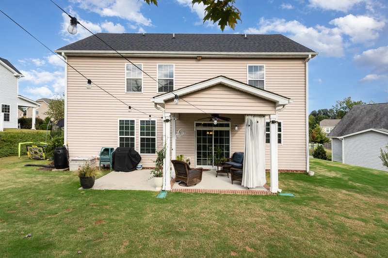 Move right in to this beautiful 4 bed, 2 ? bath home in the lovely Langston Ridge neighborhood! The freshly painted interior features an open floor plan and engineered hard woods throughout the first level. The large living area is cozy with a corner gas fireplace and opens to the sunny breakfast area and gourmet kitchen. The kitchen is well-equipped with a butler's pantry, granite countertops, tile backsplash, SS appliances, center island and walk-in pantry. The flex room downstairs can be used as a home office, dining room, playroom or home gym. Upstairs, you'll find the large primary suite with a trey ceiling, generous walk-in closet, luxurious, spa-like bathroom with soaking tub, dual vanities and walk-in shower. The spacious laundry room makes this tedious task loads easier. The other 3 bedrooms are just down the hall along with another full bath with tub/shower combo. Relaxing and entertaining space is extended outdoors. Sip your morning coffee from the front porch overlooking the community green space. The backyard features a covered porch and patio. Beautiful trees were planted to create a natural privacy fence and buffer from the neighbors. This home is super convenient to everything you'll need - about a mile from Starbucks, Target, Home Depot, Chick-Fil-A and more plus only a few minutes to Knightdale Station Park, Oak City Brewery and about 15 minutes to downtown or North Hills. Neighborhood amenities include a Jr. Olympic size swimming pool, clubhouse, playground and winding sidewalks throughout the community. Greenway access is just down the road too! Sunny Days indeed! Call this your home!