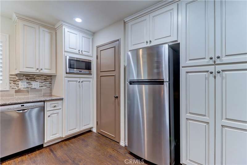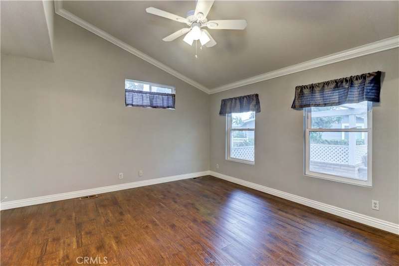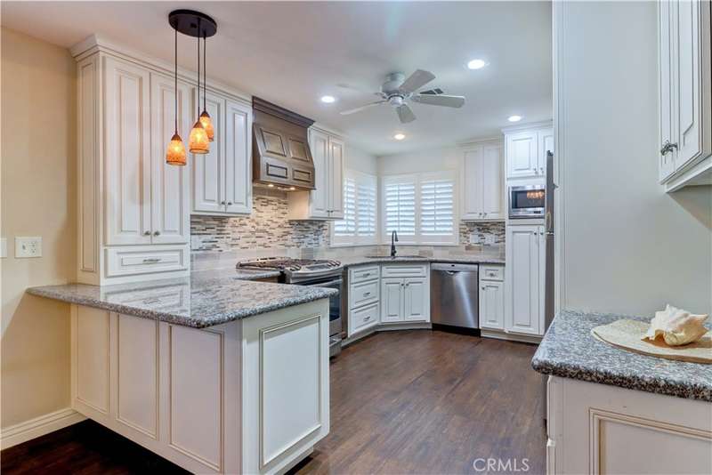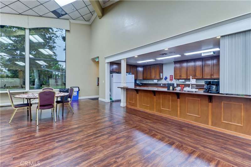 Senior Living 55+. Welcome home! As you drive through the gates of Lake Park you are met with the serene scene of the sparkling lake and fountain surrounded by mature, statuesque trees. Continue past the pool and club house to this beautiful 2 bedroom and 2 bath home. This gem features open concept floor plan and features vaulted ceilings, large windows allow for plenty of light, and laminate flooring throughout the home. The living room and dining room area has open feel with high, wood beam ceilings and lots of windows providing great cross ventilation to capture the afternoon breeze. Double glass doors open to the inviting outdoor areas with covered patio and green garden. Beyond you'll see gorgeous views of park like greenbelts and trees. Kitchen has been elegantly remodeled with timeless, neutral colors and feature granite counters and breakfast bar, stylish cabinets, glass tile backsplash, stainless steel appliances including six burner range, oven, built-in microwave and dishwasher. Primary suite has a large walk-in closet and looks out over your patio and garden. Luxuriate in your primary bathroom with spa-like, tile and glass shower enclosure. In addition to the secondary bedroom there is a den area adjacent to the living room that features a space-saving Murphy bed for additional guest accommodation, both just steps away from the guest bath. Inside laundry room with gas dryer and washer for convenience and ease. The 2 car attached garage has built in storage and remote access. You can carry your groceries straight into the kitchen from your private parking space. Plenty of guest parking available nearby. This home is located on a premium site adjacent to an expansive greenbelt, park area and features a larger than typical yard, perfect for entertaining or just quietly enjoying the view. The community offers a beautiful pool and indoor spa for residents to enjoy, there is a workout room, library and billiard room. Lake Park has ongoing weekly social activities and special events you won't want to miss. Reserve the clubhouse with well-appointed kitchen for your special events and enjoy all that Lake Park has to offer.