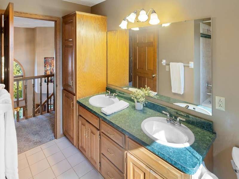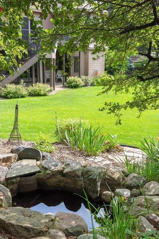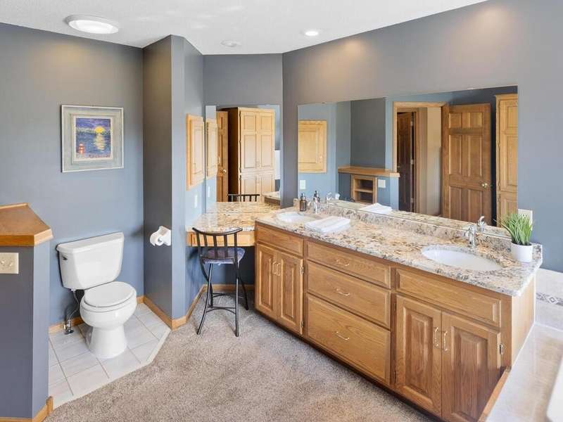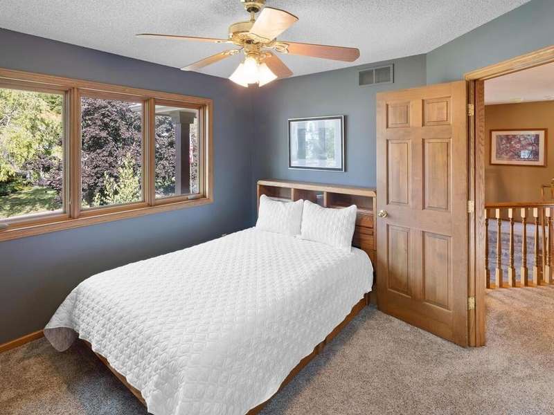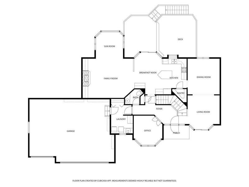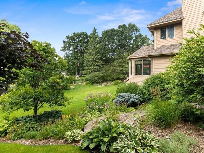Beautifully maintained 5-bed, 4-bath home on a cul-de-sac with scenic garden views! Enjoy your morning coffee from the sunroom or maintenance-free deck. The main floor features a large dining room, custom-built office, sunroom, oversized living room, and separate formal living room. Open-concept kitchen features granite countertops and stainless-steel appliances. The upper level has four bedrooms, including a spacious primary suite with walk-in closet, double vanity, and separate tub & shower. The walkout lower level offers a large family room, fifth bedroom, bathroom, sitting room with gas fireplace, and a stunning British-inspired bar. Recent improvements include new water heater, maintenance-free deck, concrete driveway, garbage disposal, and main-level paint. Located close to beautiful parks, walking trails, and schools, as well as nearby shopping, dining, and major highways.