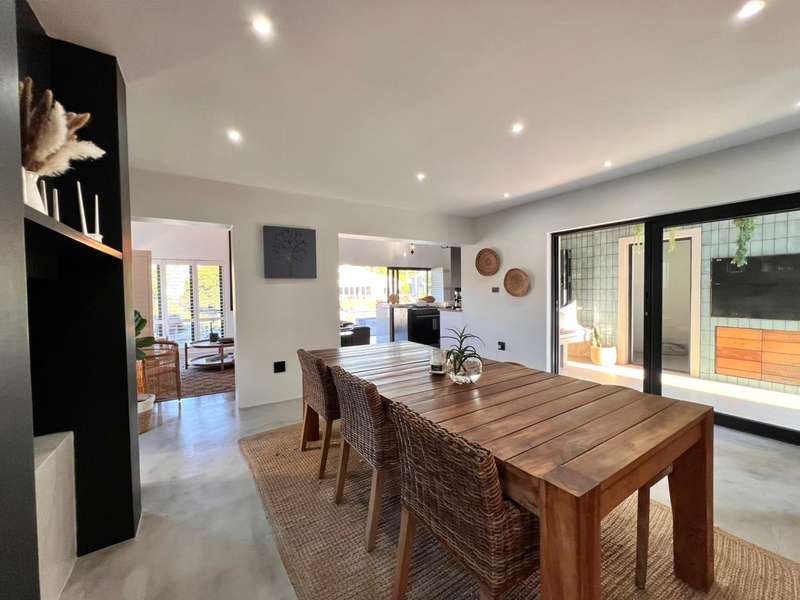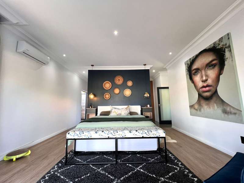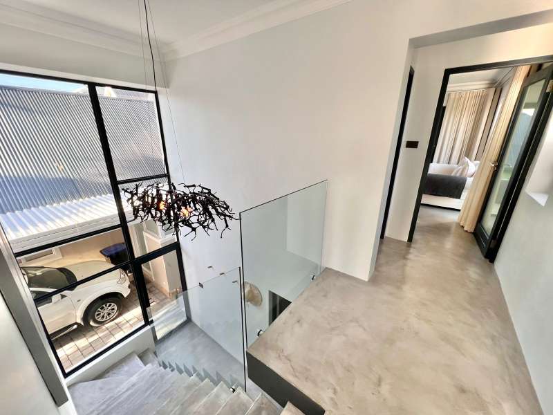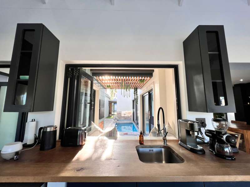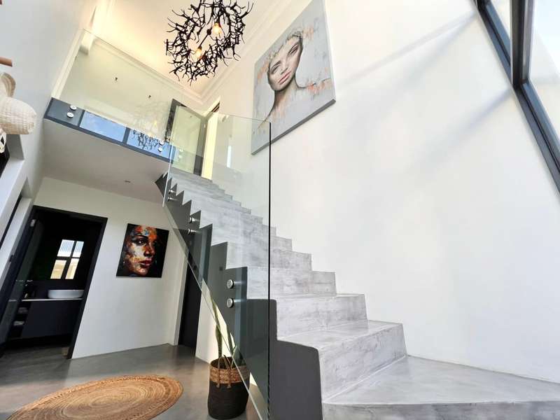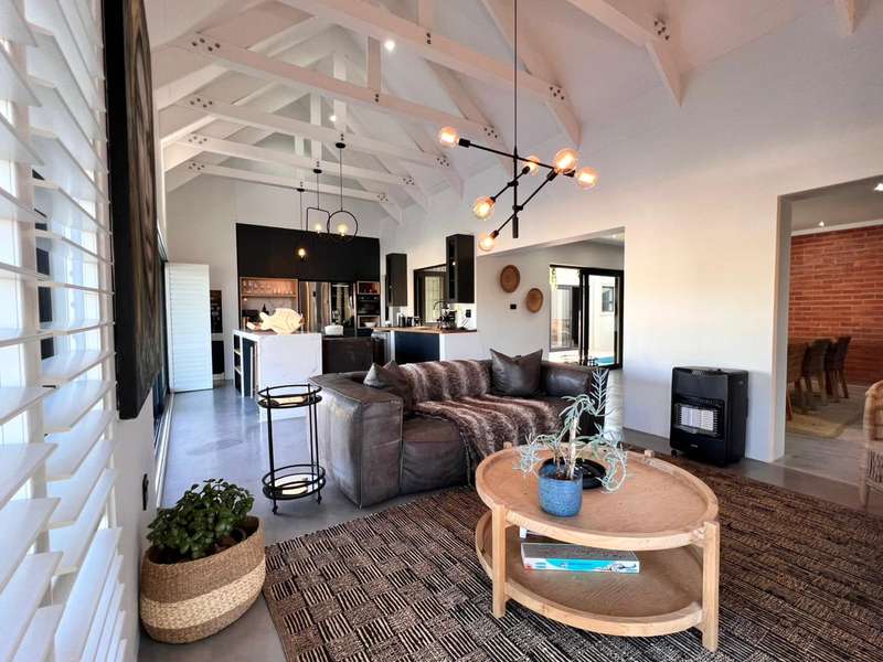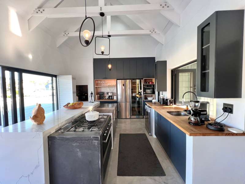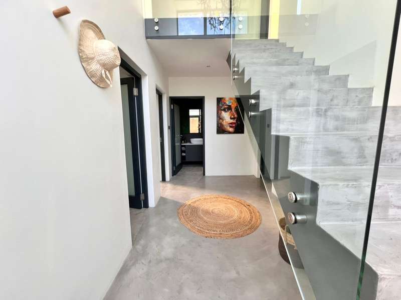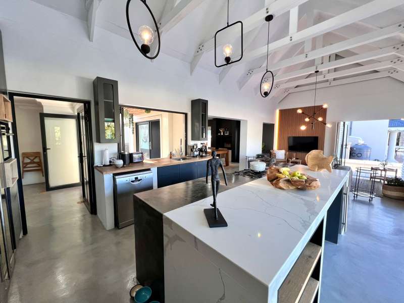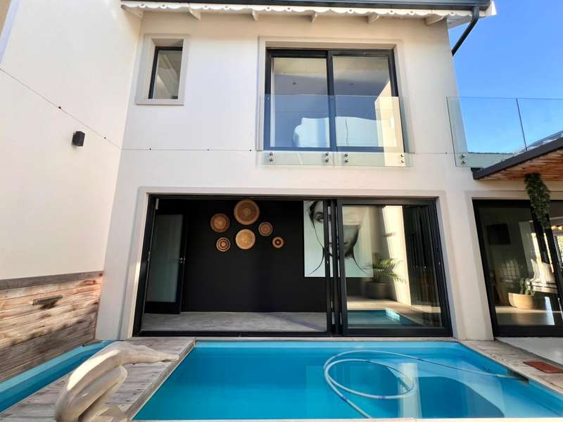 Experience the pinnacle of refined waterfront living in this luxurious residence situated within the prestigious Marina Martinique estate. More than a home, this is a lifestyle- one defined by tranquillity, sophistication, and seamless connection to nature. From the moment you enter the private courtyard, you're greeted by a sense of peace and exclusivity. A heated pool takes centre stage, framed by expansive sliding glass doors that open completely to merge indoor and outdoor spaces. Whether you're hosting guests around the built-in braai or enjoying a quiet moment by the water, this home is designed for both intimate relaxation and unforgettable entertaining. Inside, clean architectural lines and premium craftsmanship define the open-plan living spaces. Warm, natural textures- including exposed timber rafters- complement bespoke finishes and designer touches throughout. A combustion wood fireplace adds ambiance to the dining and lounge areas, while the custom kitchen is fitted with high-end appliances from Smeg, Bosch, LG, and Midea. Step out onto the 100m² Garapa deck, where canal views stretch before you- ideal for a sunrise coffee or an evening sundowner. The main suite is a private sanctuary with direct deck access, a luxurious en-suite bathroom, and both indoor and outdoor showers for a spa-like experience. This home offers flexible accommodation with a second guest bedroom, which doubles as a study with a stylish guest toilet. Moving upstairs, there is a third bedroom & en-suite bathroom, alongside a huge versatile bonus room currently used as a dance studio- which can be easily convertible into a fourth bedroom or family space. High-spec features include: • Solar-powered energy system with 8kVA inverter, 10kVA lithium batteries, and 12 solar panels • Triple garage with built-in cabinetry • Underfloor heating and air conditioning for year-round comfort • Designer details such as American shutters, Weylandts lighting, and a built-in pizza oven. Tucked within a secure, lifestyle-focused estate, with access to canals perfect for paddling, swimming, or boating, this residence offers more than just luxury- it offers a life of balance and beauty. This is modern waterfront living, reimagined! Contact me today to arrange your private viewing.