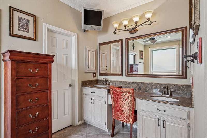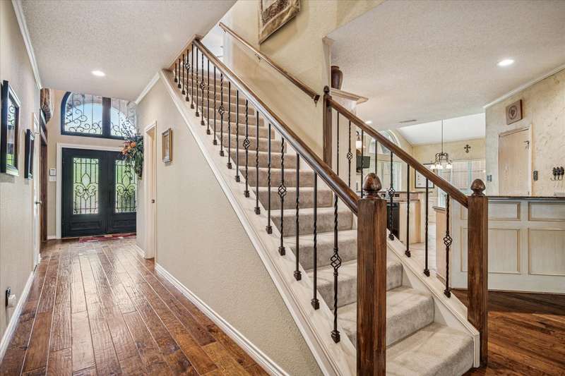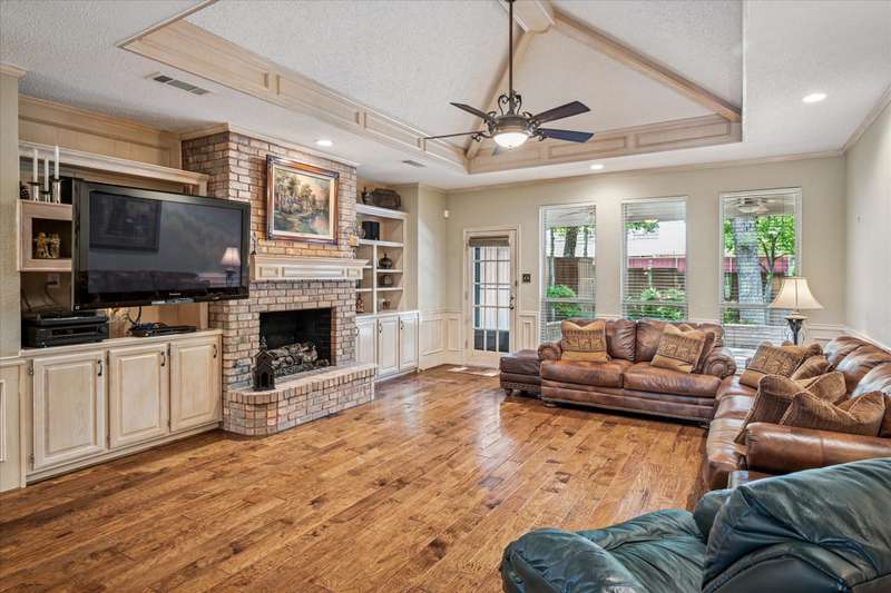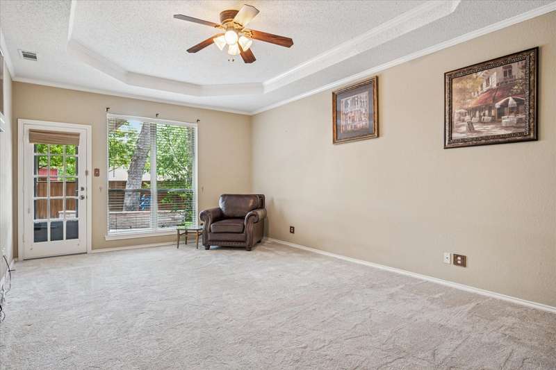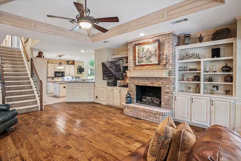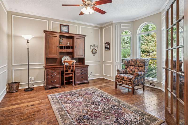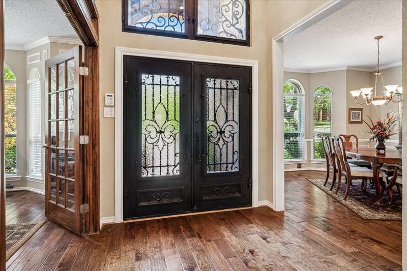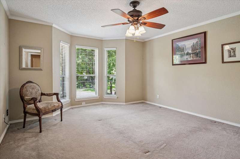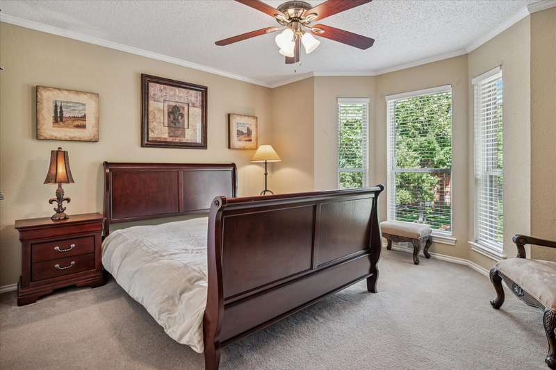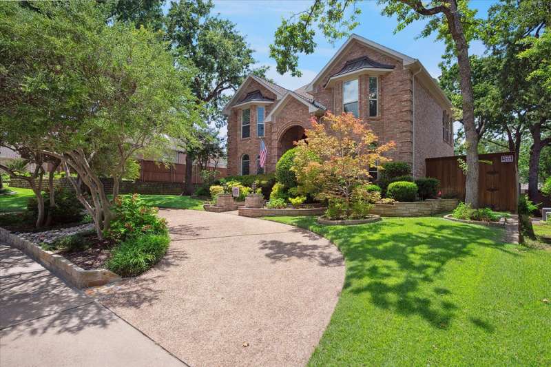 Located in the highly sought-after Park Place neighborhood in Coppell, this meticulously maintained home offers a perfect blend of comfort, function and timeless style. Situated on a quiet street with a circle drive for additional parking, the home makes a striking first impression with its elegant iron and glass front door and mature, tree-shaded landscaping. Inside, the versatile layout features 3 bedrooms, a bonus room, an additional upstairs living area and a dedicated downstairs office with French doors and rich hardwood floorsideal for todays work-from-home lifestyle. The inviting den features a fireplace, vaulted ceiling and hardwood floors, creating a warm and open atmosphere. A wall of windows offers views of the backyard, while custom built-in shelves and cabinets provide both style and functionality. Throughout the lower level, picture frame molding adds a refined architectural touch. The spacious primary suite is located on the first floor and features a trayed ceiling, private access to the backyard and a serene atmosphere. The open-concept kitchen is designed for entertaining, complete with granite countertops, a double oven, and seamless flow into the vaulted breakfast nook, wet bar and den. Both upstairs bedrooms feature private en-suite bathrooms. Outside, you will find a tranquil, shaded backyard with an 8 ft board on board cedar fence, covered stone patio and ceiling fans - perfect for relaxing or hosting guests year-round. The entire exterior was freshly painted in 2024. The original windows have been replaced for energy efficiency and peace of mind for years to come. This home combines thoughtful upgrades with a flexible floor plan in one of Coppells most desirable neighborhoodsdont miss this rare opportunity!