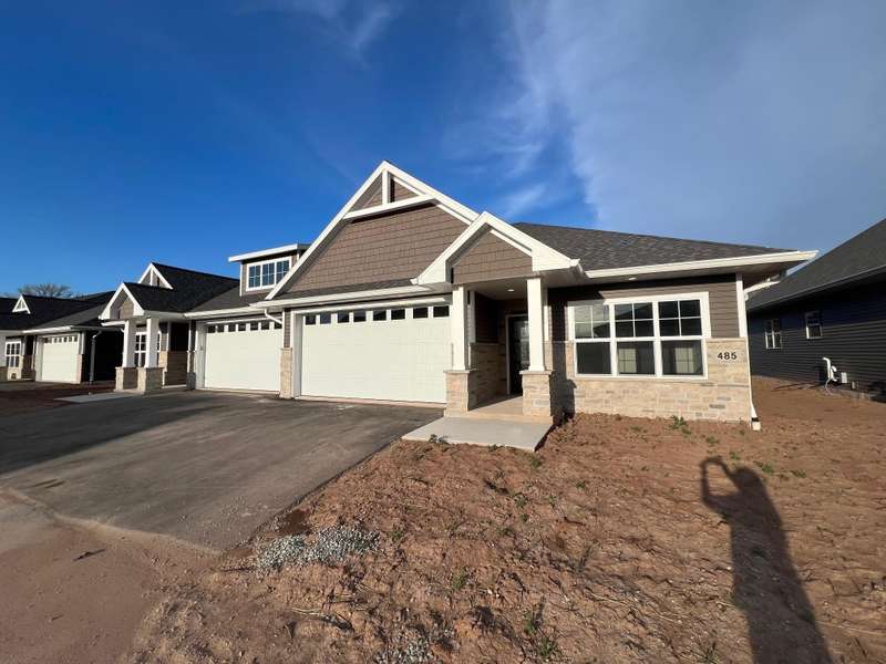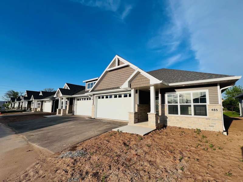 Enjoy carefree living in this beautiful no step entry, side by side condo. Open concept 1-story with spacious great room featuring tray ceiling, large daylight windows, gas FP & door to maintenance free deck. Kitchen offers abundant custom cabinets, quartz countertops, tile backsplash & center island. Enjoy the large master suite with tray ceiling, walk-in closet, dual sinks & walk-in shower. Other amenities include 2nd bedroom/office, first floor laundry & finished lower level with Rec Room, 3rd bedroom & full bath. Photos are similar but may not be exact. Floor plan is the same but colors may vary.