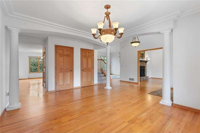 Meticulously maintained 4 bedroom 3 bath 2 story walkout that is situated on 0.34 acre lot in a cul-de-sac surrounded by mature trees. As you walk through the main floor enjoy the gleaming hardwood floors, the living room shows high ceilings, gas fireplace with built-ins and large picturesque windows. The eat-in kitchen has custom cabinets, built-in desk with just steps to newer 2-tier maintenance free deck. There is a formal dining room giving great space to entertain and a quaint front room that you can cozy up to gas fireplace. There is also a main floor laundry room with window and access to the deck and a 1/2 bath. The open staircase takes you to the private 2nd level with large primary suite showing French doors, full bath with jetted tub, walk-in shower, and large walk-in closet. The are 2 other nice sized bedrooms and a full bath to accommodate. The walkout lower level has over 1400 sq ft that awaits your finishing touches. A well maintained home in a great location and close to schools, parks and just minutes to downtown Rochester.