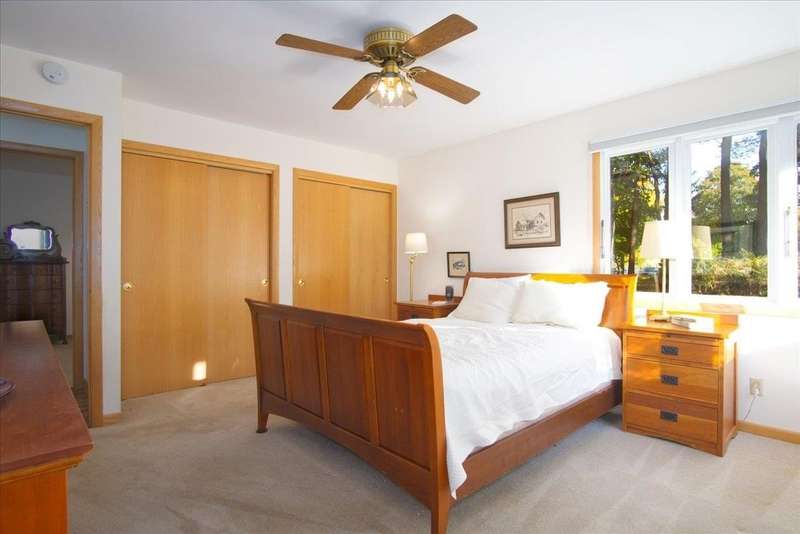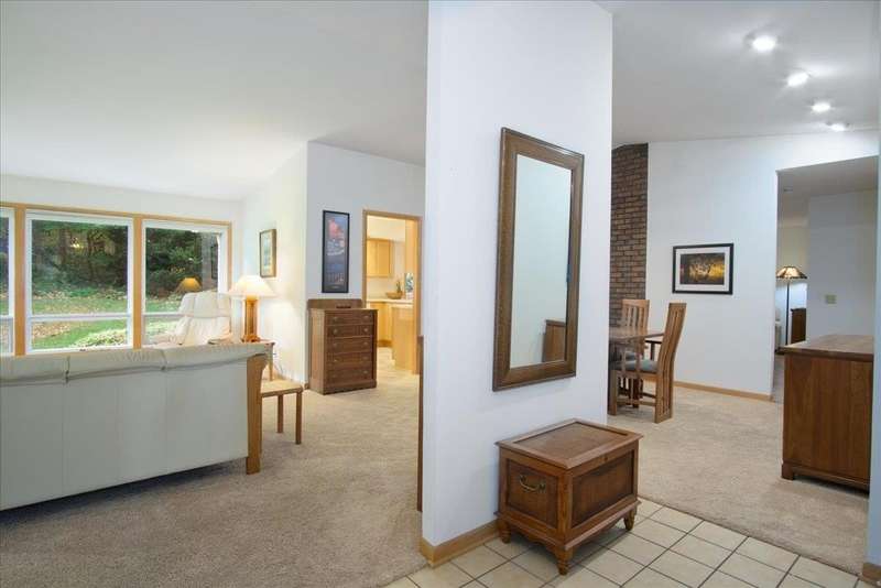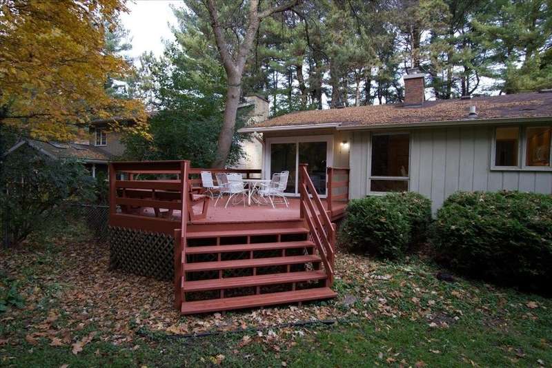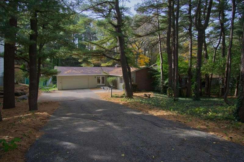 Private setting in nature's paradise! Over 1/3 acre lot set among established trees, this ranch home offers room to spread out inside. Entry and living space invite you in to enjoy the lush fenced-in backyard. Adjacent dining space is set against the exposed brick of the chimney. Eat-in kitchen offers ample storage and counter-space for baking and cooking enthusiasts. Cozy family room w/fireplace and sliding door leads to the large deck, which will become another cherished room of the house come spring! Three generous bedrooms, including ensuite primary round out the main level. Laundry on both levels provides convenience & flexibility. HUGE unfinished basement for your future plans. Priced to allow for your personalization and investment for the next 20+ years!