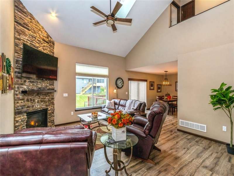 Ready for you, this contemporary, two-story Zero Lot impresses from the moment you walk in the door with the vaulted great room highlighted by a 2-story stone hearth. Great room flows into the spacious dining area and an upgraded kitchen with granite counters and a breakfast bar. Awaiting you on the upper level are three generously-sized bedrooms and two full baths, along with a convenient laundry closet. Primary bedroom boasts an ensuite and walk-in closet. An additional 750 unfinished square feet in the basement offers endless possibilities. There's also a spacious deck off the dining area to enjoy outdoor barbecues or your favorite cup of brew. It's all here, waiting for you! Take a closer look today.See Agent Remarks for showing property.