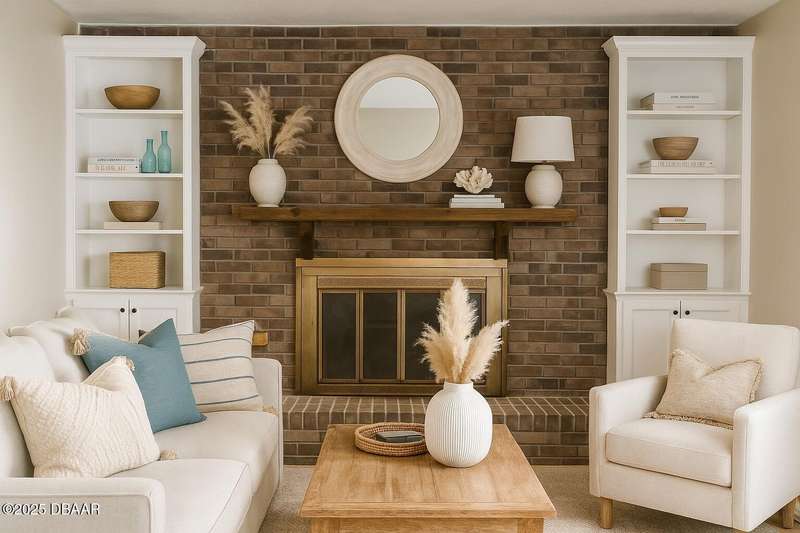 Welcome to Peach Paradise - Updated 3-Bedroom Home with Private Backyard where you can create your own entertainment oasis! Step inside where you will find a beautifully updated 3-bedroom, 2-bath concrete block home designed for comfort, style, and easy Florida living. Nestled just minutes from the scenic Halifax River and a short drive to the beaches of Ormond and Daytona, this home offers the perfect mix of tranquility and convenience. Inside, you'll find a bright, open-concept layout that seamlessly connects the living, dining, and kitchen areas-ideal for family gatherings and relaxed entertaining. The heart of the home is a cozy gathering room featuring a stunning brick fireplace, perfect for peaceful evenings in. The brand-new kitchen boasts stainless steel appliances, granite countertops, and stylish finishes that make cooking and hosting a delight. A versatile bonus room offers endless possibilities-create your dream office, game room, craft space, or a serene reading nook. The spacious bedrooms each feature large walk-in closets, and both bathrooms have been tastefully updated with modern fixtures. Step outside to your fully fenced backyard a private oasis ideal for entertaining, play, or simply enjoying a quiet evening under the stars. With shopping, dining, parks, and top coastal destinations just minutes away, Peach Paradise offers a lifestyle of comfort and convenience. This turn-key gem won't last schedule your private showing today and make Peach Paradise your new home! Some pictures inside the home and including the backyard are virtually staged to give buyers design ideas.
