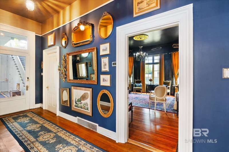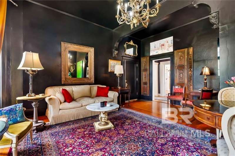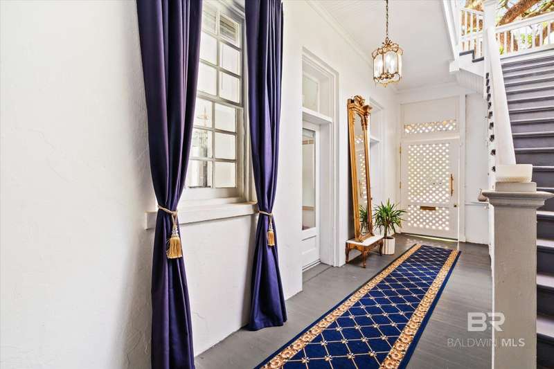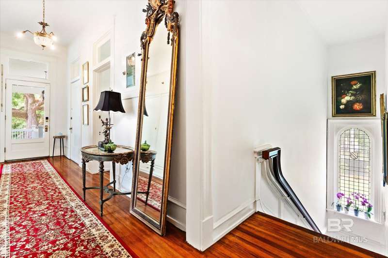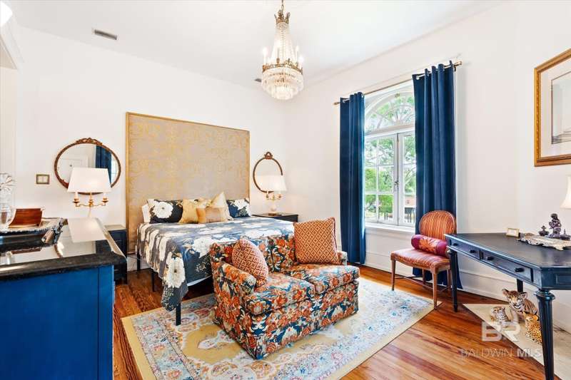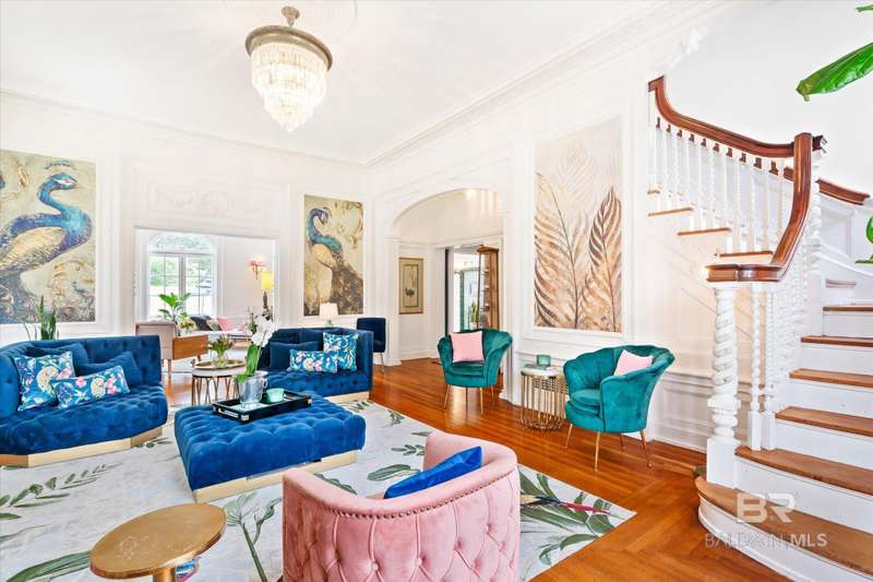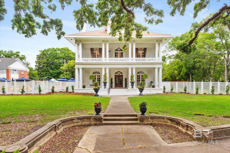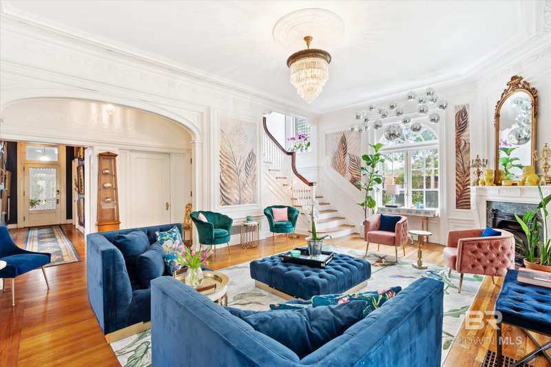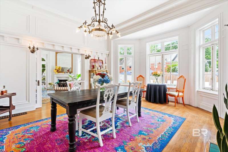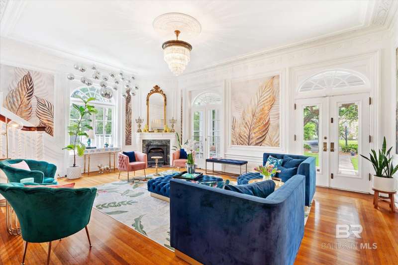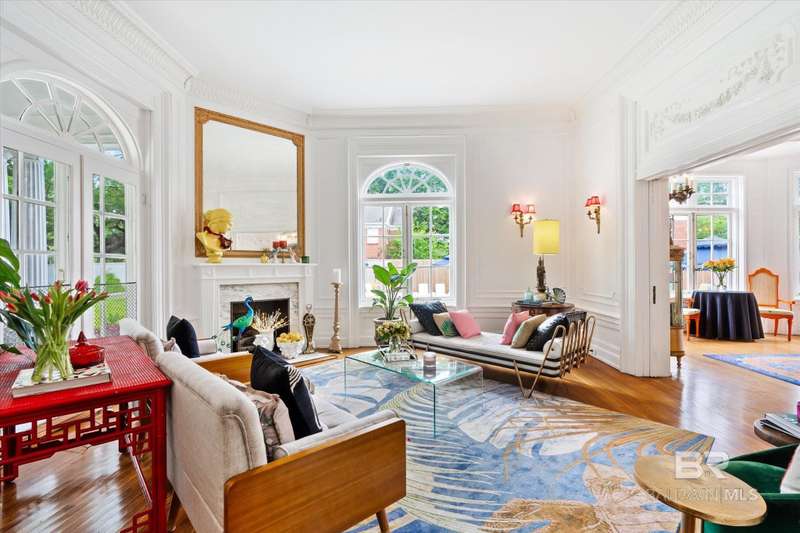 The Driskell is nestled on over an acre of landscaped grounds in the coveted Old Dauphin Way Historic District. This circa 1911 masterpiece was designed by Mobile's famed architect George B. Rogers for Francis J. Inge. This stunning residence has a rich history & many classical features that has made it the backdrop for countless parties & private events. The Driskell has been featured in several publications. It also boasts 5-6 bedrooms, 4.5 baths and nearly 5000 sqft. All formal rooms, feature French doors, fireplaces, wainscoting/dado moulding, gilded sconces, original chandeliers and bas-reliefs. The formal saloon features a French style mantle, gilded mirrors and French doors that look out to the boulevard and the new pool courtyard. The formal dining room, features built-in china and sterling-silver storage, gilded sconces, double pocket doors, inlaid floors and a fireplace that features a Rookwood relief inset into the original mantle. The first floor also features a side study/lounge with fireplace and rich decor. The generously sized Tre chic kitchen has updated cabinetry, new Quartz countertops, brushed gold hardware/sink and new appliances. Upstairs features 5 oversized bedrooms, each with unique design styles, 3 baths, a 2nd kitchen and front & rear balcony lounges are all on the second floor. The 3rd floor features a palladium window and could be finished for additional living/storage space. Home features a partial basement w/9' ceilings. Outback there is 2 car garage and parking for 30 + cars. Modern amenities ensure comfort & efficiency, with updated HVAC systems, plumbing, electrical, new roof in 2021, 20'x40' gunite pool was built in 2022. Freshly painted, refinished floors & updated throughout. This grand home stands as a testament to timeless elegance, blending historic charm with fresh decor & contemporary conveniences. Buyer responsible for verifying all measurements and relevant details. Buyer to verify all information during due diligence.