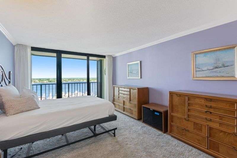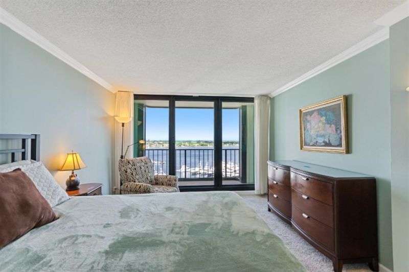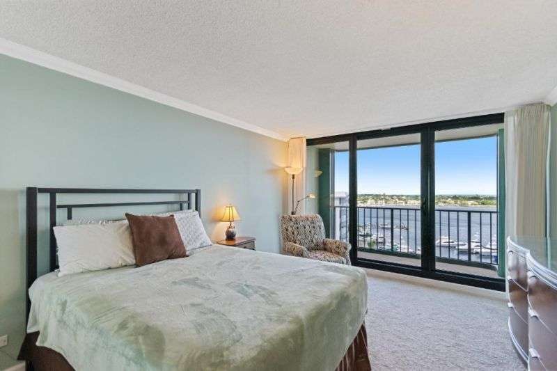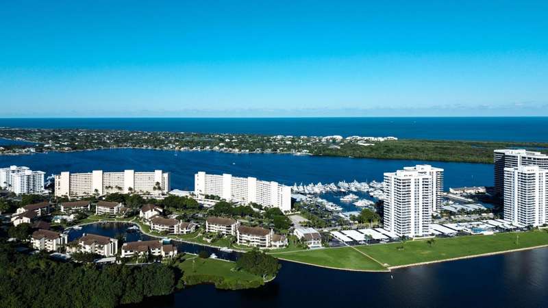 Beautiful Ocean & Marina Views from this 2BR/2BA End-Unit PENTHOUSE Condo with GARAGE parking. Enjoy stunning east and west exposures, an upgraded kitchen with stainless steel appliances, and new IMPACT WINDOWS throughout with screens and new hurricane shutters. Additional features include a newer A/C, wood flooring in the dining, living, and kitchen areas, and a spacious primary suite with a walk-in shower and built-in closet shelving.This unit is conveniently located next to the elevator and just steps from the assigned garage parking space. Community amenities include a waterfront pool, fitness center, community room, library, 24-hour manned gatehouse, and a scenic waterfront walking path. Ideally situated close to shopping, dining, golf, tennis, and miles of beautiful beaches