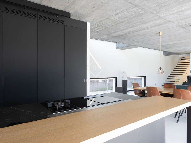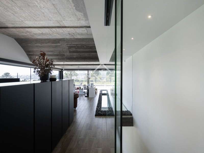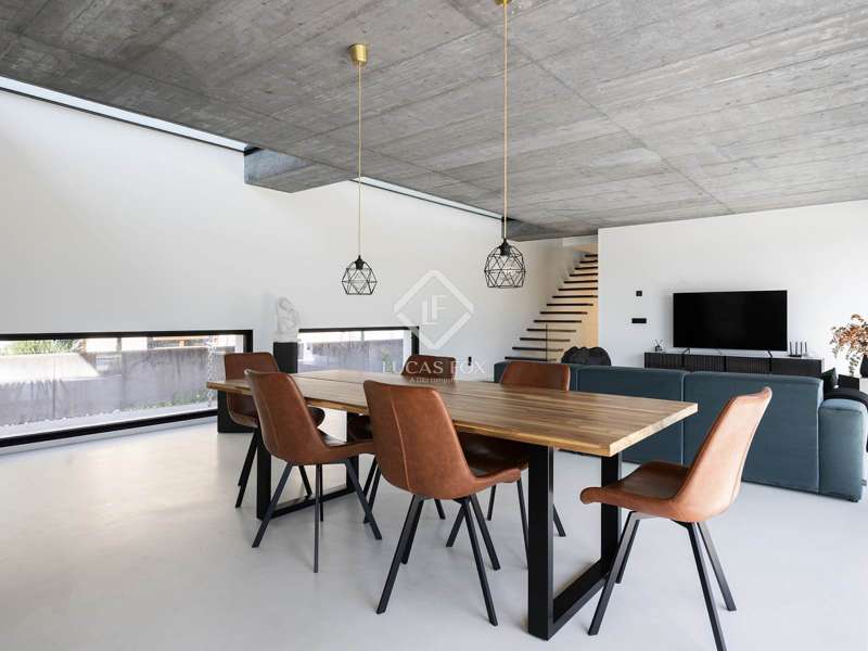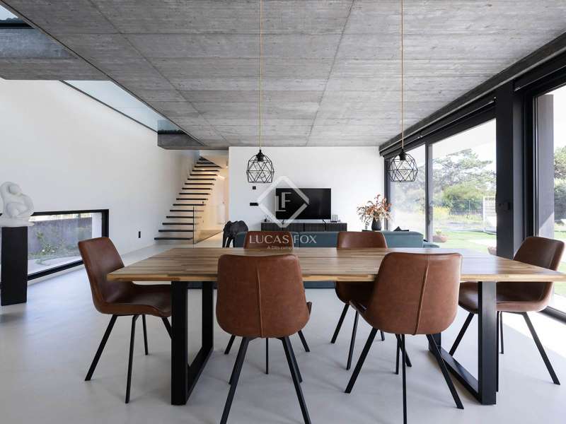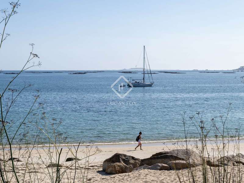 With top quality design and finishes, this concrete constructed property is for those looking for a home with a unique modern architecture and walking distance to the beach. Located in a Pobra do Caramiñal, in the Arousa estuary, the house benefits from lovely views over the sea, a quiet and rural location, and is next to one of the most attractive beaches in the area. At just five minutes from the town, with this house you have the best of both worlds: peace and quiet, and proximity to local services and shops, and of course the bars and restaurants. There is also a marina nearby. Entering through the electric gate, the plot is completely enclosed, and is large enough, but maintenance is limited due to the current owners having used artificial turf rather than a traditional lawn around the garden area and large heated pool and sun terrace. On the ground floor we find a large open area, with lots of natural light provided by the glass frontage, which faces south, giving the house the perfect orientation to enjoy the sun all day on the terrace outside the living area and, of course, the pool. The kitchen and living area is an open-plan layout, with exposed tinted concrete and an industrial feel, and top quality kitchen installations. The living area looks out onto the garden and pool area, with the south side of the house being almost entirely a glass facade. Walking past the living area along the length of the house, there are three bedrooms sharing two bathrooms, all continuing the minimalistic style. An open staircase leads to the first floor where the current owners have a large open area, with the main suite, including the bedroom area, bathroom and dressing room, plus a gym area and living room space, with access to the terrace which runs along the length of the house, taking in the sea views and overlooking the pool and garden. A new prospective owner might want to split this area up to create extra rooms or living areas, but for those seeking a modern lifestyle, the open layout offers practicality and quality of life. Downstairs and to the basement level, there is a large space which incorporates the garage, big enough for three cars, plus bicycles and more. There is also on this level a utility room with TV, machine room, gym, store room, and cellar. Outside there is a large pool surrounded by an astroturf lawn, and space still to be landscaped into further gardens. The property benefits from underfloor heating, which is powered by two heat pumps, which also provide cooling during the summer months. This house would be ideal for those seeking peace and quiet by the sea, views and walking distance to the beach, at the same time as being in touch with civilization, the town of A Pobra da Caramiñal just five minutes away by car. It might also suit investors looking for an opportunity in an area where there are plans to make improvements to the marina and boardwalk, and where demand is increasing year-on-year.