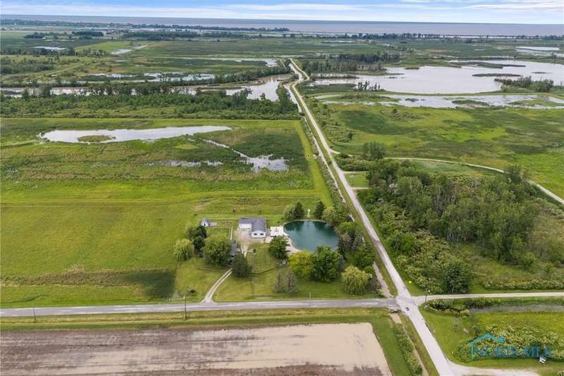 Escape to your own retreat w/this 3-bedroom, 2-bath home on over 2 acres, minutes to Lake Erie and adjacent to Ottawa Wildlife Refuge. Inside, you'll find hardwood floors & recessed lighting throughout, spacious kitchen w/a cooking island, pantry and a cozy LR w/fireplace. 1st floor offers laundry, bedroom and bath, while the upstairs bath boasts a charming clawfoot tub. The outbuilding is heated/cooled, with a workshop, attached 2-car garage, and a deck overlooking the picturesque pond. With a covered patio and fenced backyard, this home is a perfect blend of comfort and outdoor living.
