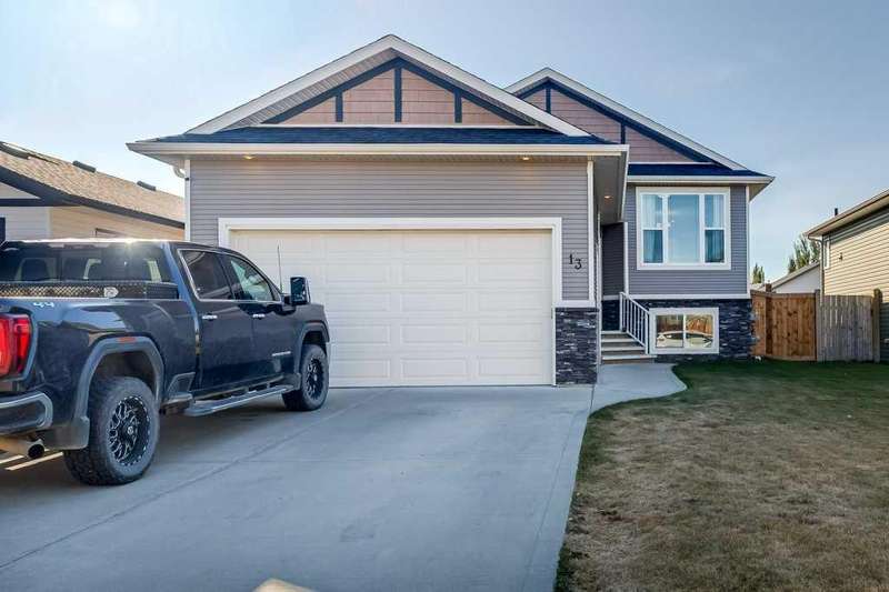 Welcome to this beautifully maintained 3-bedroom home with a spacious LEGAL 2-bedroom suite in the heart of Blackfalds! Located on a quiet close near schools, parks, the Abbey Centre and shopping. This property offers both comfort and income potential. The main home features spacious bedrooms, durable vinyl plank flooring throughout, hot water on demand, and a stunning new fireplace feature wall with custom shelving. Step outside to enjoy the newer deck space, complete with privacy walls—perfect for relaxing or entertaining. Heated, and insulated double garage.The LEGAL suite is fully self-contained with its own hot water on demand system, spacious layout, and freshly painted. Offers vinyl planking throughout, storage and laundry room. With ample parking, thoughtful upgrades, and a prime location, this property is well maintained and ready to view!