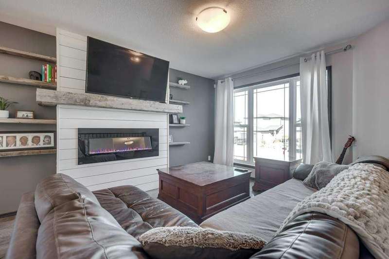 Welcome to this beautifully maintained 3-bedroom home with a spacious LEGAL 2-bedroom suite in the heart of Blackfalds! Located on a quiet close near schools, parks, the Abbey Centre and shopping. This property offers both comfort and income potential. The main home features spacious bedrooms, durable vinyl plank flooring throughout, hot water on demand, and a stunning new fireplace feature wall with custom shelving. Step outside to enjoy the newer deck space, complete with privacy walls—perfect for relaxing or entertaining. Heated, and insulated double garage.The LEGAL suite is fully self-contained with its own hot water on demand system, spacious layout, and freshly painted. Offers vinyl planking throughout, storage and laundry room. With ample parking, thoughtful upgrades, and a prime location, this property is well maintained and ready to view!
