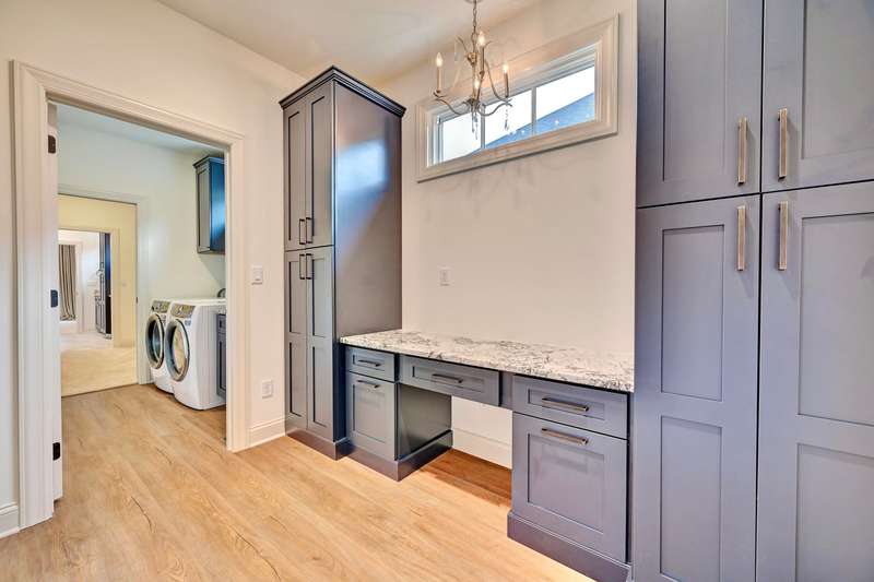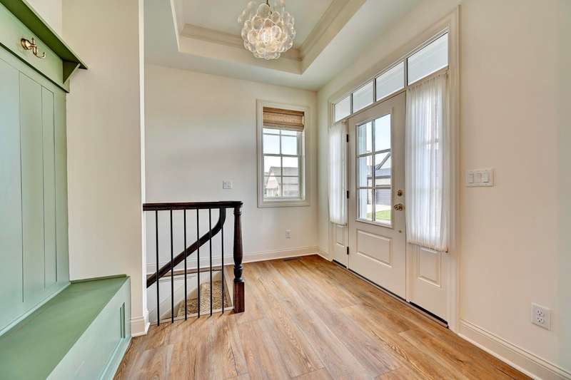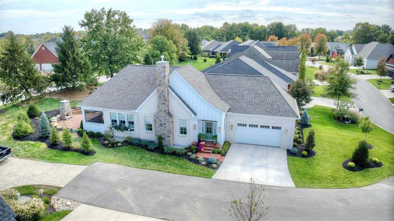 Stunning and elegant! This home showcases exceptional craftsmanship and high-end finishes throughout. Features & Highlights: Low-Maintenance Living: Homeowner fees cover lawn mowing, mulching, leaf removal, and irrigation. Thoughtfully Designed Layout: Spacious two-car garage, mudroom with built-in cubbies, and a small pocket office. Primary Suite Retreat: Includes a curbless walk-in shower, direct laundry access from the primary closet, and a tray ceiling. Seamless Open Concept: The kitchen, dining, and great room flow effortlessly together, perfect for entertaining. Luxury Finishes: Bosch appliances, light-filled interiors, and a stylish screened-in patio. Lower Level Retreat: Features two additional bedrooms, a shared bathroom, a versatile flex room, and a media room with a walk-up bar. Elegant Entryway: Welcoming foyer with custom built-in cubbies