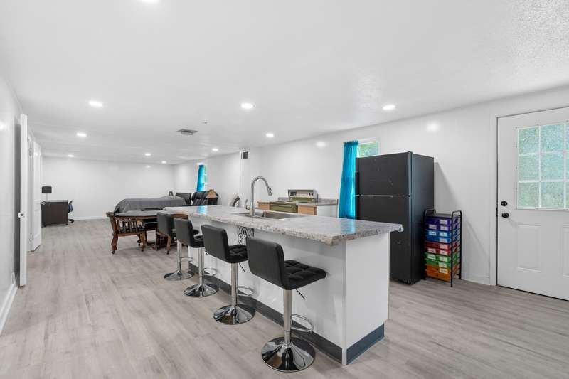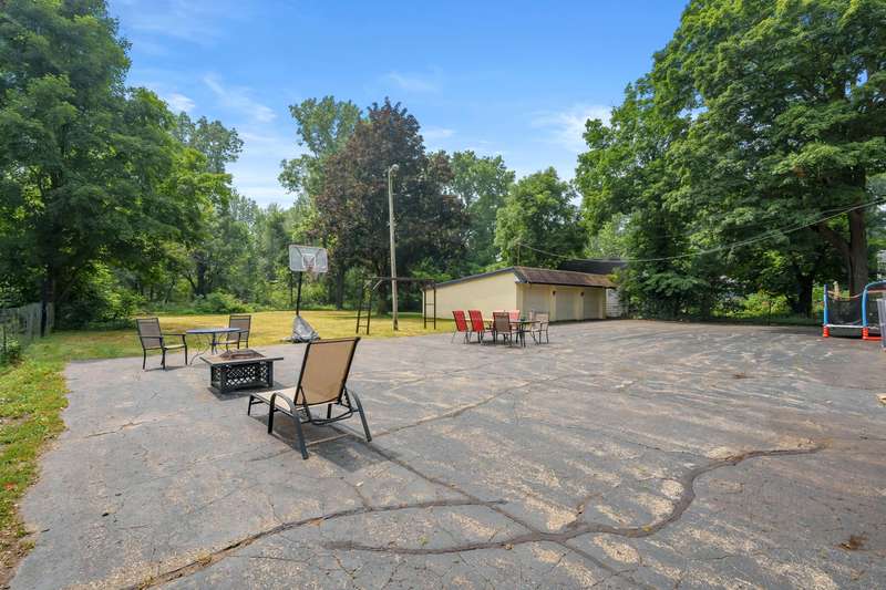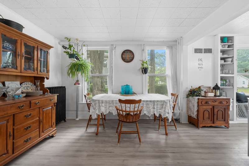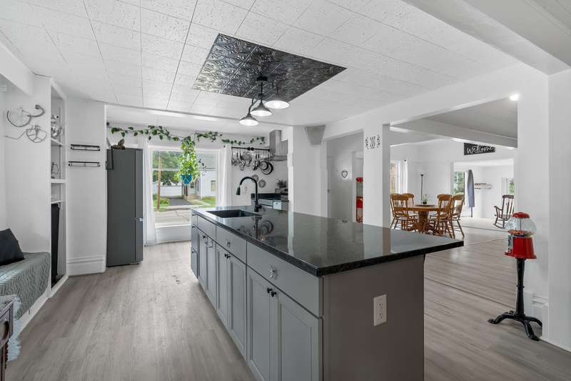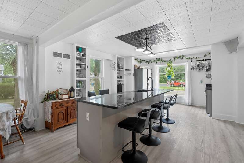 Welcome to the largest residential property within the city of Galesburg, offering over 5,400 sq ft of beautifully renovated living space on 3.46 acres of scenic riverfront. This historic home has been thoughtfully updated featuring all new flooring and brilliant white paint throughout. Major mechanical upgrades include a new electrical panel, and replacement of all galvanized steel plumbing lines. The expansive main level showcases a wide-open floor plan with a stunning kitchen featuring granite countertops and a 10-foot island that flows into the dining and spacious living areas, ideal for entertaining or everyday living. The home includes one full and two half baths on the main level, and a luxurious full bath upstairs with a deep soaking tub. Click supplement for more! A separate bonus living space with its own driveway and private entrance, a second full kitchen, a primary suite with a walk-in shower, and an additional half bath, making it perfect for a in-law suite, rental apartment, guest quarters, or multi-generational living. Zoned R-3 Residential, this versatile home has the potential to be converted into a 3-unit income property, with three kitchens already in place. Alternatively, take advantage of the layout to run a business on the lower level while living upstairs, the possibilities are endless. Other highlights include a large workshop/tool room, a spacious laundry area with stainless steel counters, durable cabinetry, and solid wood built-ins and closets throughout the home. Outside, enjoy a large fenced yard and over 3 acres of woods teeming with wildlife, including deer, rabbits, and a resident bald eagle. The property features direct river access for fishing, kayaking, or canoeing, and access to the Kal-Haven Trail for safe, scenic walking, running, or biking. Tall ceilings and airy spaces create a warm and inviting atmosphere that must be experienced in person. Don't miss the one-of-a-kind opportunity to own a multi-use, historic riverfront estate in the heart of Galesburg.
