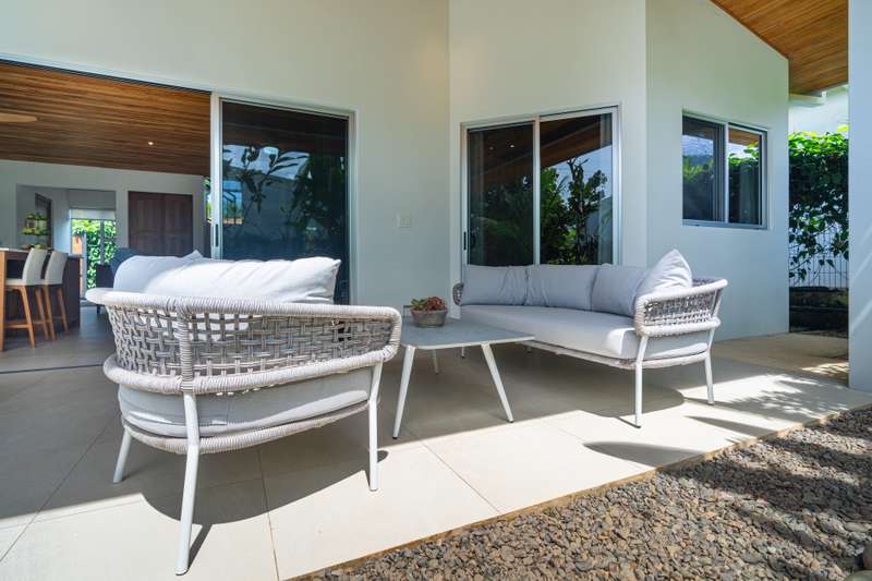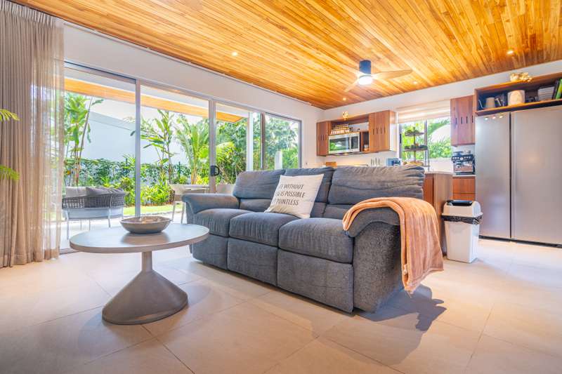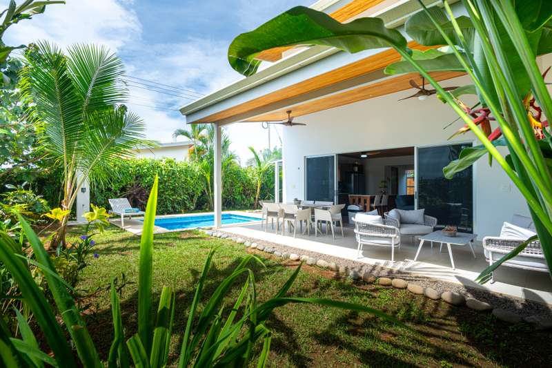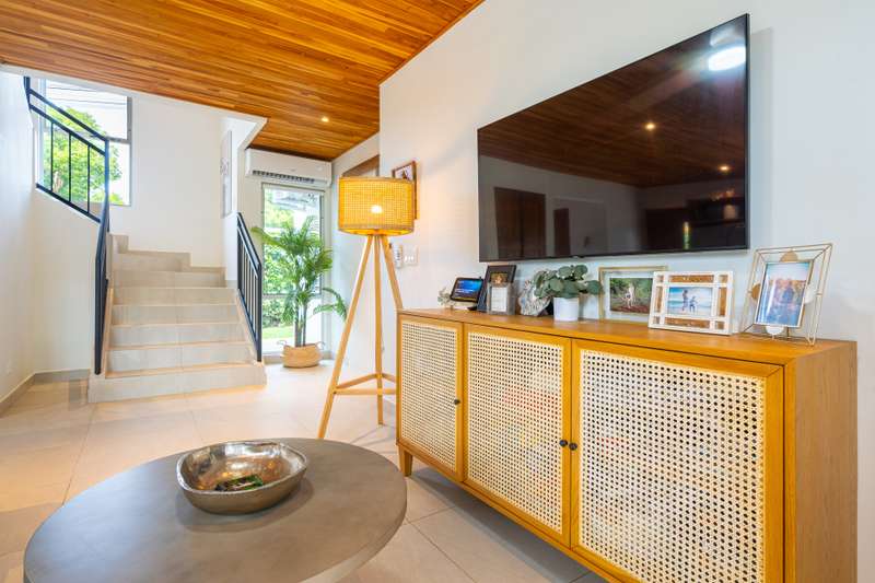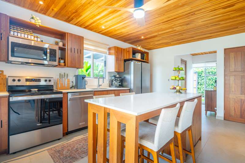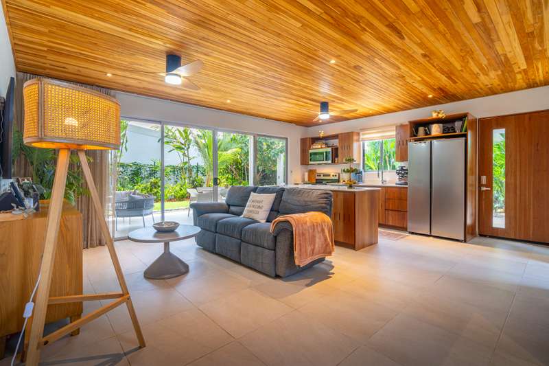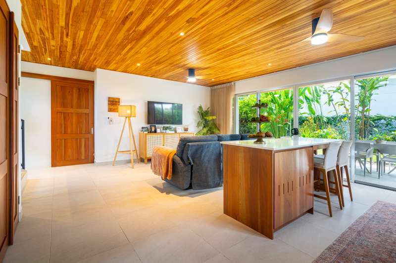 This contemporary three bedroom home blends refined design with everyday ease. Perfectly positioned on a paved road in the center of town, it offers effortless access to a coffee shop, restaurants, and local markets... while still feeling tucked away amid lush greenery and privacy.
