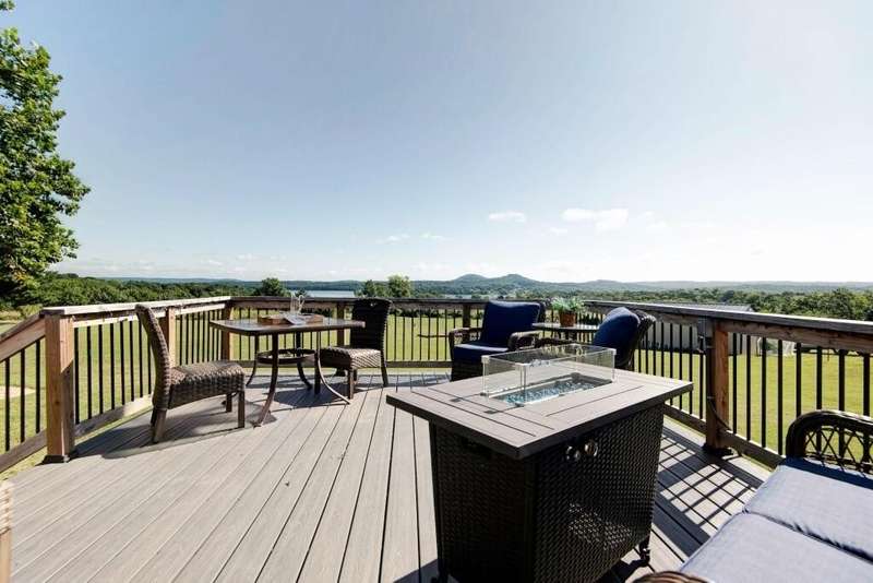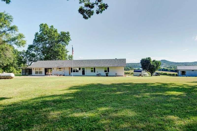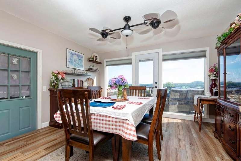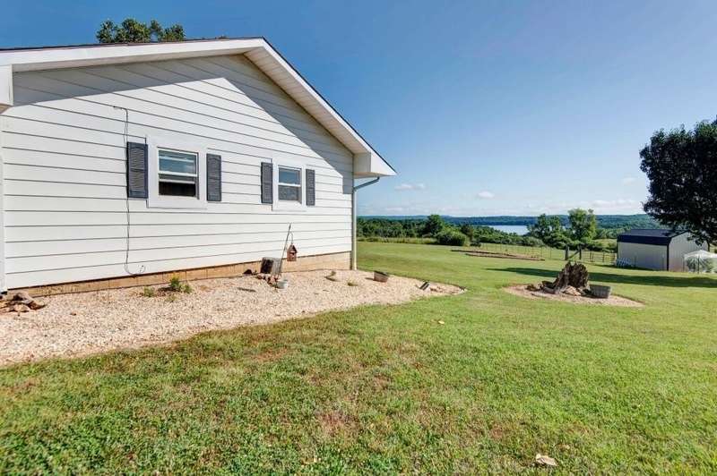 This beautiful lake view home offers over 2,600 SF of living space, 3 bedrooms, 2 baths, 2 living areas, hobby/craft room, tons of storage and a sunroom with windows galore all located on 2 sprawling acres. Enjoy the great outdoors from the back deck, ideal for morning coffee or evening gatherings with lake and mountain views. Recent updates include a 2 year old roof, well pressure tank approx. 4 years old, HVAC and all new windows approx. 5 years old. The outbuilding has concrete flooring and electricity with plenty of room to store the lawn mower, 4 wheelers, lake toys & more. Home is located less than a mile from a public boat launch! You're 15 minutes from vibrant downtown Shell Knob - home to local favorites like Harter House, charming thrift stores, great restaurants, hardware store and more. Also, you're just 25 minutes to Berryville, AR that supplies extensive city amenities including a Walmart, restaurants and other retail. Some furnishings are available for purchase.