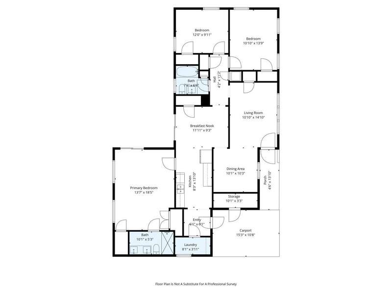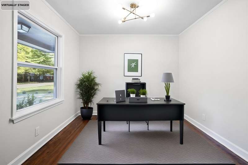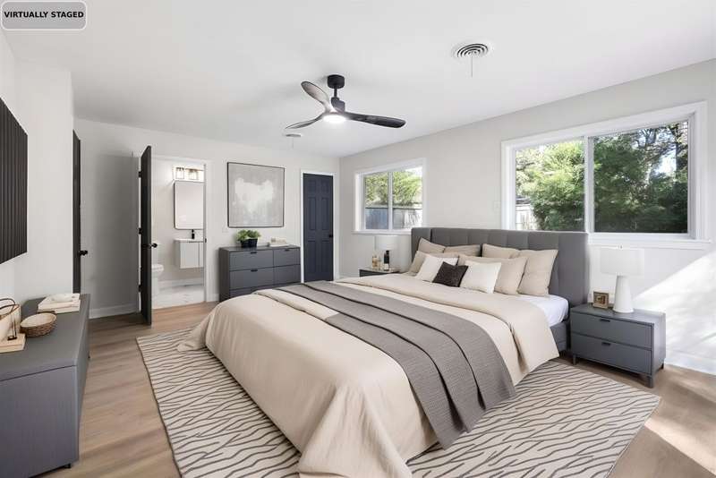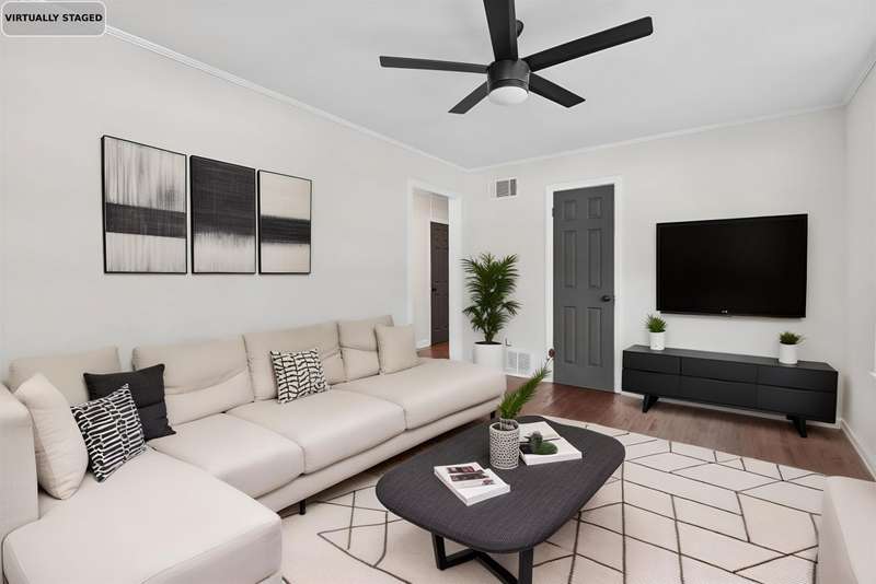 Fully updated and ready for new owners, this 3-bedroom, 2-bath Colonial Acres home with covered parking offers fresh finishes throughout. Inside, you'll find more space than expected, including a traditional dining room off the living room, a dedicated laundry room, and a private, oversized primary bedroom. The home features hardwood floors, recessed lighting, and a beautiful kitchen with quartz countertops and stainless-steel appliances. The primary suite includes a spa-style bath with floating vanity and tiled shower. Two additional bedrooms with hardwood flooring and an updated hall bath complete the interior. Outside, enjoy a large fenced yard and patio ideal for entertaining, plus a welcoming front porch, covered parking, and storage space?all with convenient access to nearby shops and restaurants. Room dimensions are approximate and based on computer-generated floor plans.