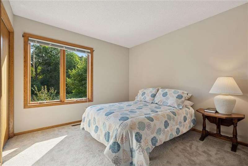 A gem is waiting for you in Birch Park and this Eagan two-story shines from the INSIDE-OUT. This gorgeous setting offers woodland views, lovely landscaping and privacy beyond compare. Enjoy the best of fall from its expansive deck and screened-in Gazebo. Open the front door to reveal a traditional layout with refreshed paint and many recent upgrades. The kitchen is the heart of the home and delivers stainless steel appliances, granite countertops, Cherry cabinetry and real hardwood floors. Entertainment is made easier with both formal and informal dining space. The sunken family room shows off a beautiful brick fireplace with a gas insert and built-ins on either side. The front living room offers versatile use with a half bathroom down the hall. Head to the upper level to find four bedrooms, two full bathrooms and BRAND-NEW carpet installed throughout. The primary suite bath features a recent remodel with a freestanding tub, tiled shower stall and Quartz countertops. The lower level is unfinished with walkout access and welcomes your own design for instant equity. There is great storage, a woodburning fireplace, rough-in plumbing, and laundry service already in place. The concrete driveway was just redone a year ago and the roof is 11 years old with 30-year shingles. Don’t miss this incredible opportunity with the Eagan Civic Arena, Cascade Bay Waterpark, Dakota County Library and serene parks and trails all within walking distance.