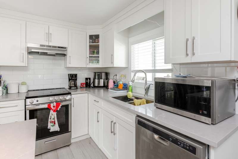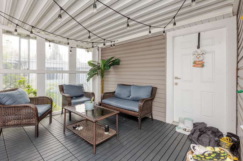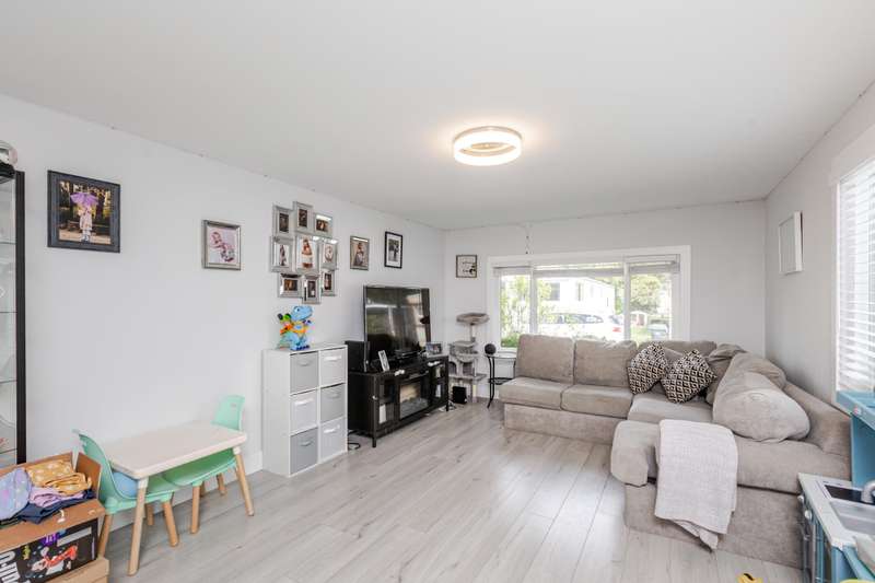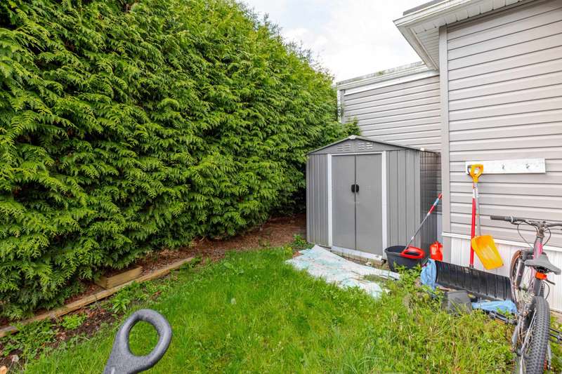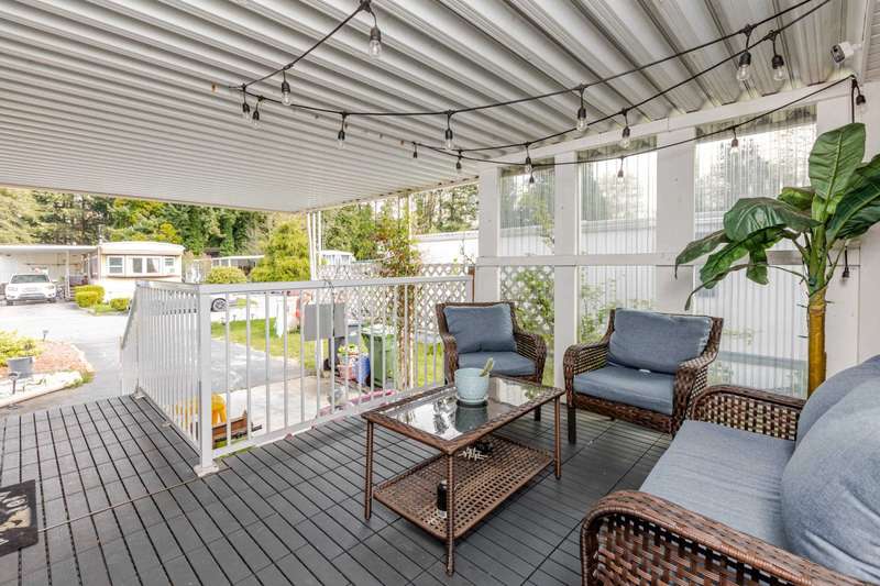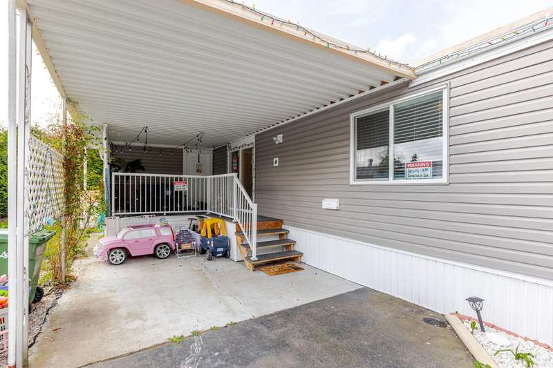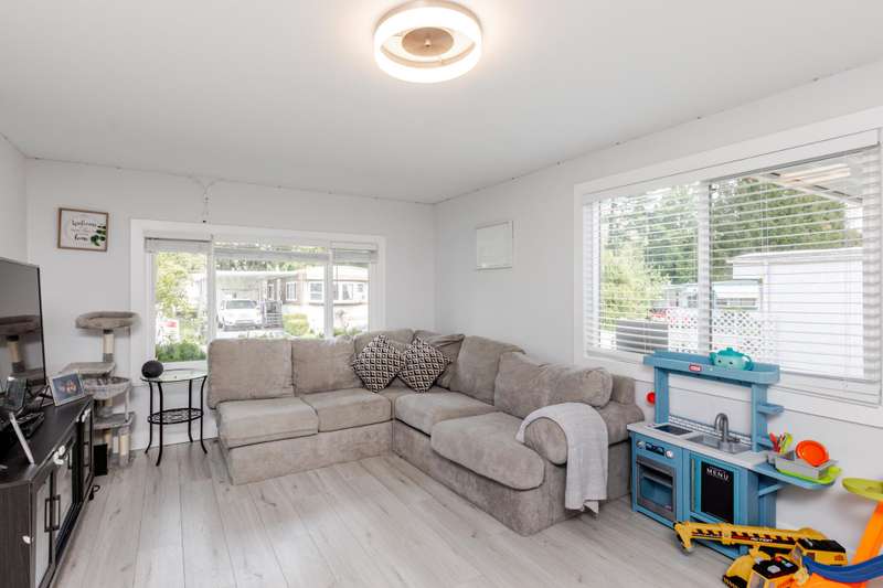 Welcome Retirees and Families to this quaint, lovely home in Breakaway Bays, just shy of 900 sq ft, 2 bdrms with generous walk in closets, 2 Full baths completely and tastefully renovated throughout in 2021 - New Roof in 2022, New Furnace 2023, New Hot Water Tank 2025 Must See! Lovely deck area for entertaining, parking for 2 cars. Plenty of Visitor parking, Clubhouse has an Outdoor heated pool, Library, Pool Table etc. and hosts many community activities. Close to everything! Beach, Shopping, Golf, Transit, Schools and the USA Border. RV Parking available Electricity is included in the pad rent!