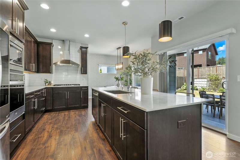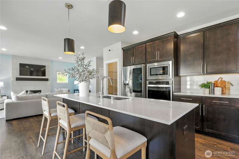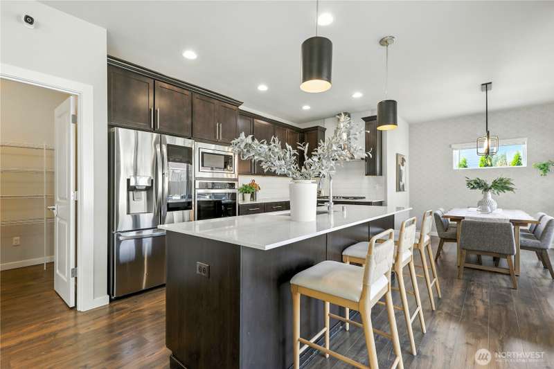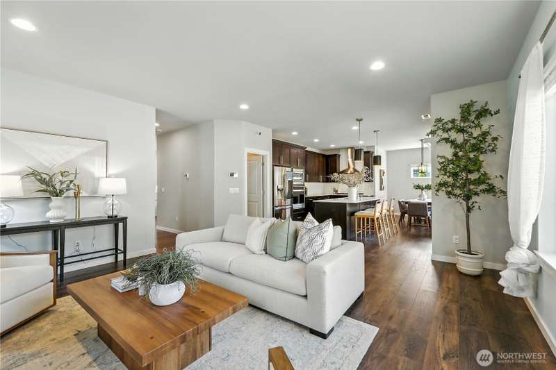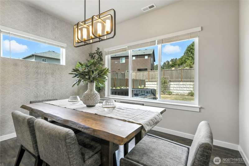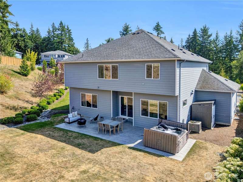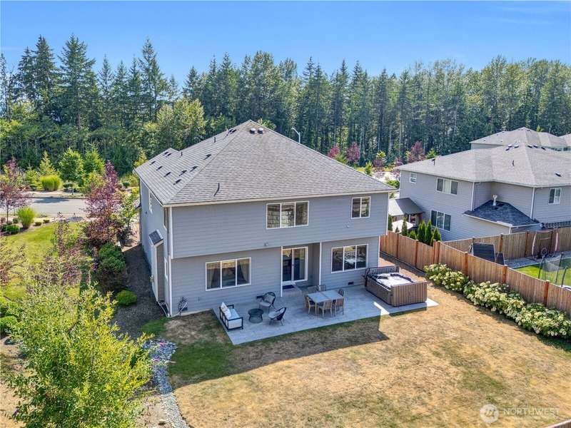 On the outskirts of Snohomish you’ll find this meticulously maintained 5 bed+ office, 2.75 bath home in desirable Monroe Woodlands! Thoughtful layout w/numerous upgrades including: custom finished office, ¾ bath on main, quartz counters, modern light fixtures, designer wallpaper, breakfast bar seating, SS appliances incl gas stove, generous storage thru-out, & walk-in pantry. Gas fireplace, tankless water heater & central AC. Luxurious primary suite, spa-inspired bath w/large soaking tub & WIC. Upstairs boasts 4 additional beds to utilize how you wish. Level, partially-fenced yard w/imported Italian paver patio & hot tub which backs to HOA maintained green space. Quiet neighborhood offers sidewalks, nature trails & multiple playgrounds.